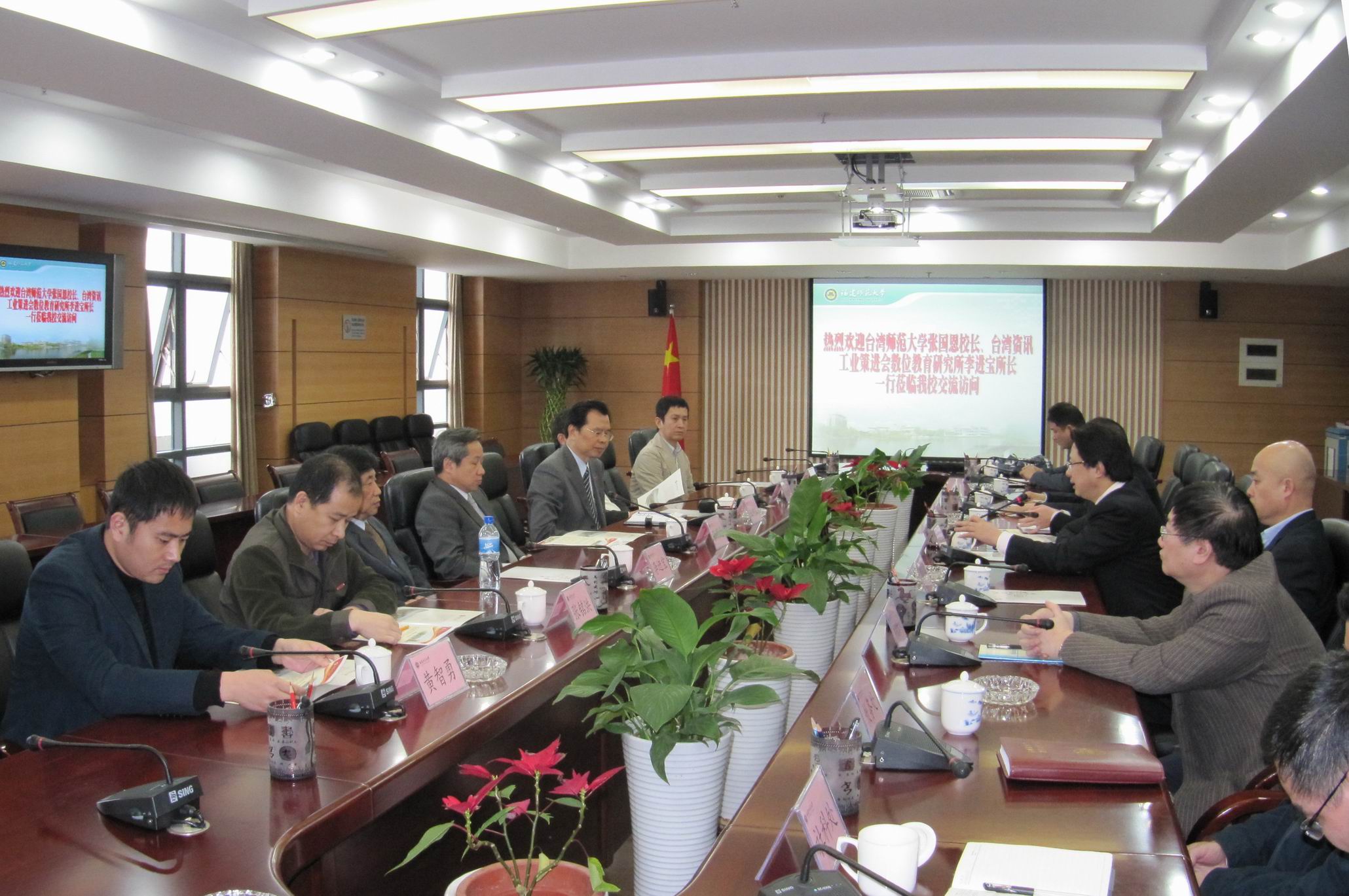 近日,台湾师范大学张国恩校长、台湾资策会李进宝所长一行到U8·电子(中国)官方网站参观访问。校党委罗萤书记、黄汉升校长、许明副校长会见了来宾,学校办公室、研究生处、人事处、教务处、科技处、社科处、港澳台办相关负责人陪同会见。 台湾师范大学是台湾地区成立最早、院(系、所)最完整、最具规模的师范大学,与U8·电子(中国)官方网站签有框架合作协议。此次来访,双方就进一步加强实质性合作展开深入探讨,在开展多层次、多形式合作交流等问题上达成了共识。 (港澳台办 施 伟)
