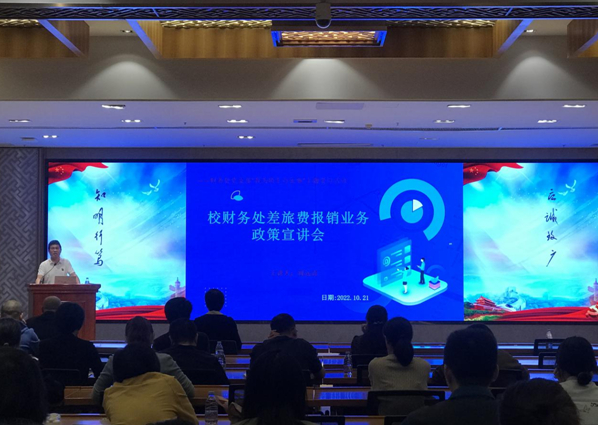 1021日,财务处在宏达厅召开“差旅费报销业务政策宣讲会”主题党日活动。各学院办公室主任、机关部处综合科负责人、财务经办人员,财务处支部党员参加了宣讲会。