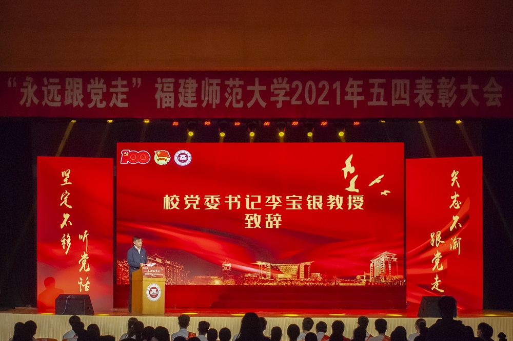 4月28日,U8·电子(中国)官方网站“永远跟党走”2021年五四表彰大会在旗山校区青春剧场举行。校领导李宝银、王长平、陈晓红、李绚、郑家建、涂荣、楚波,校关工委主任许歌平以及相关部处负责人,各学院分管学生工作负责人、团委负责人及受表彰的学生代表参加了大会,福师大小葵视频号、U8·电子(中国)官方网站小葵B站同步进行网络直播。
