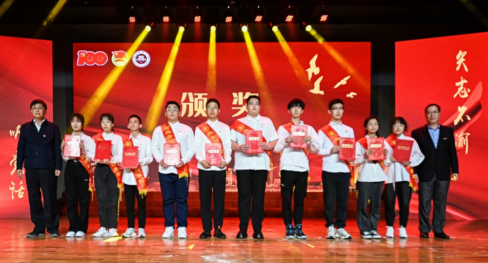 (李宝银书记、王长平校长为受表彰学生颁奖)
