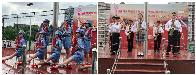 百年礼赞敬献祖国,初心向党致敬楷模。4月26日上午,附属小学第二十九届科技艺术节拉开帷幕。作为附属小学庆祝建党100周年系列活动之一,本届科技艺术节以“童心永向党阳光下成长”为主题。开幕式上,同学们通过灵动的舞蹈和优美的乐器演奏诠释了对祖国的热爱和对党的赞美。据悉,为期三周的科艺节将通过“班班有歌声”“班班有美展”、科学作品展、名师讲座等活动充分展现学生的活力与才智,引导少年儿童感受和传承红色基因,厚植爱党爱国爱社会主义的情怀。(附属小学)