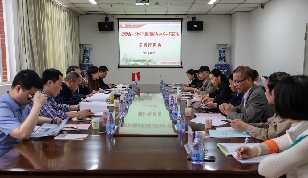 4月28日,省委宣传部常务副部长、省电影局局长许守尧等一行六人,到U8·电子(中国)官方网站福建省电影剧本创作研究中心开展调研。校党委书记李宝银、副书记陈晓红陪同调研,校党委宣传部、传播学院、福建省电影剧本创作研究中心负责人等参加了调研座谈会。