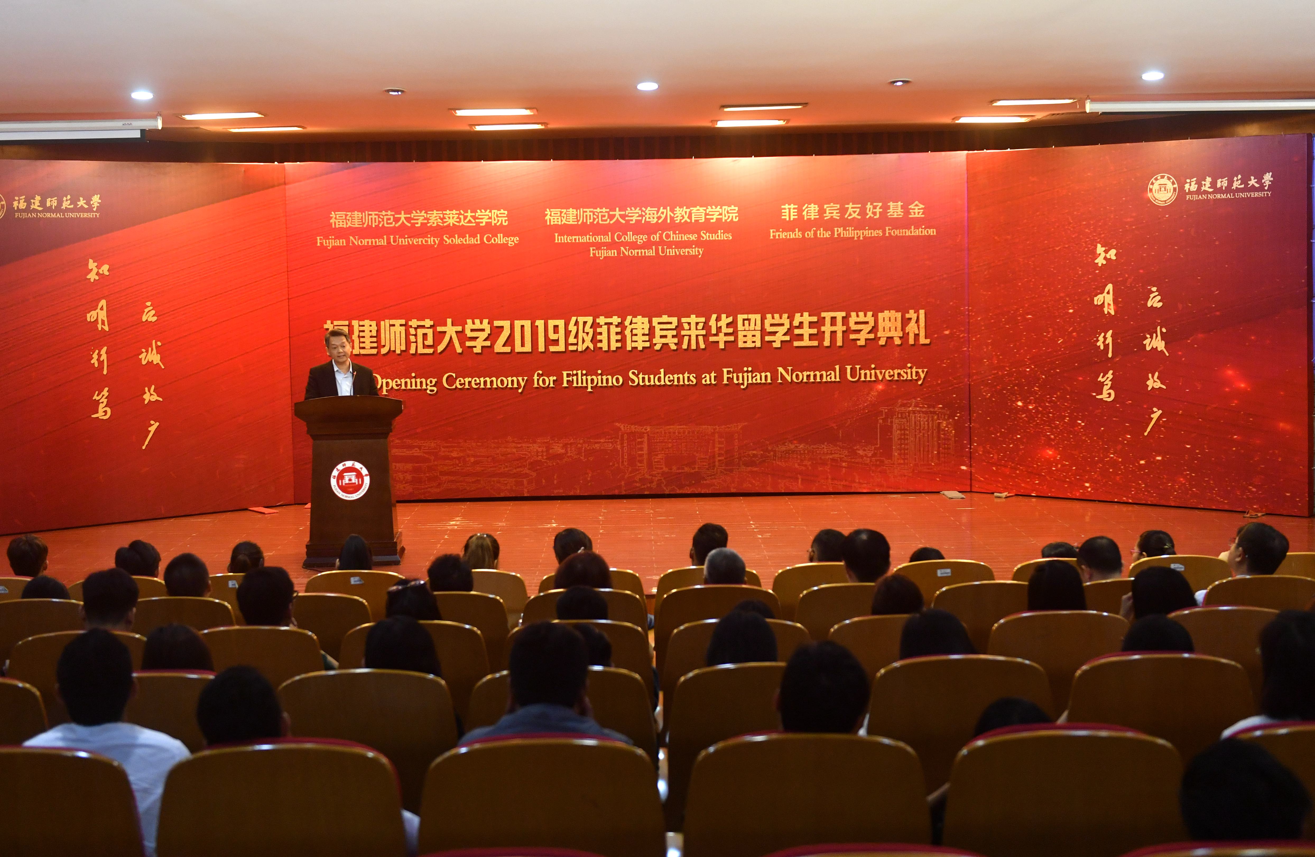 9月2日下午,U8·电子(中国)官方网站2019级菲律宾来华留学生开学典礼在旗山校区举行。菲律宾友好基金创会主席、U8·电子(中国)官方网站董事会副董事长许明良,福建省外办党组成员、福建省人民对外友好协会专职副会长陈出新,福建省教育厅对外合作交流处处长周而明,校领导李宝银、赖海榕,学校相关部处及海外教育学院、索莱达学院师生等参加了开学典礼。开学典礼由副校长赖海榕主持。