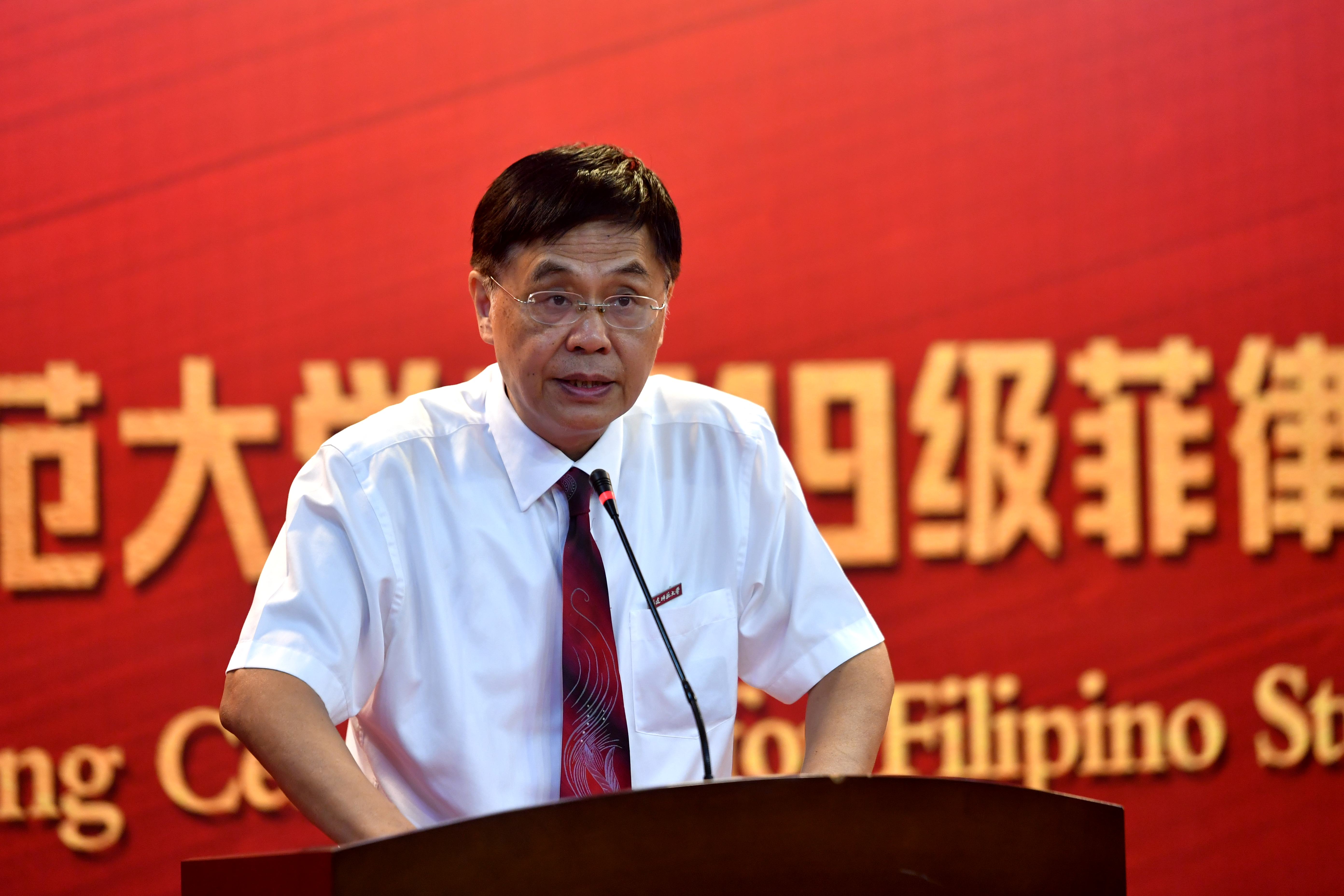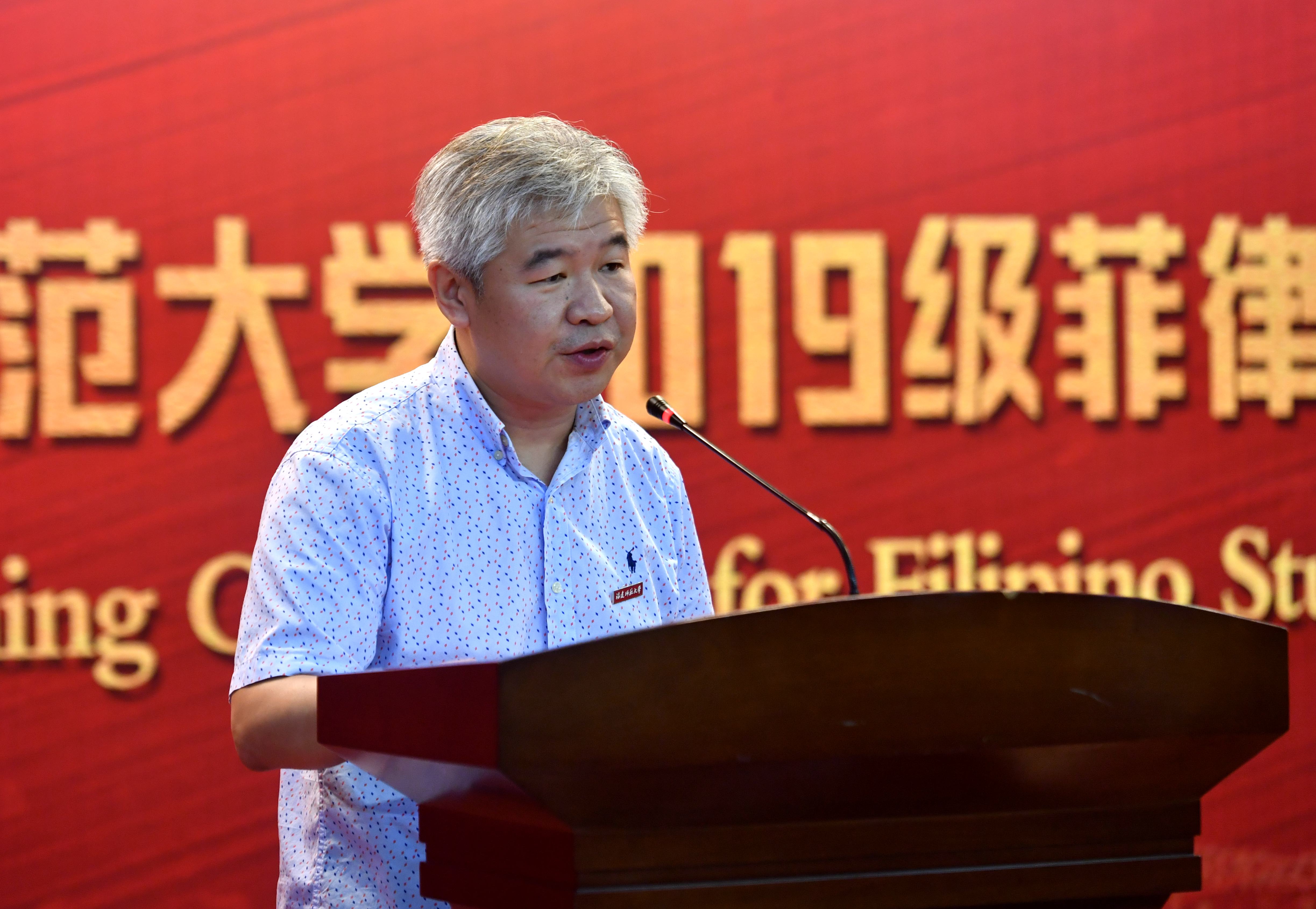 校党委书记李宝银在致辞中代表学校热烈欢迎远道而来的菲律宾新同学,简要介绍了学校的发展历史和办学情况,指出学校长期以来深入推进与菲律宾的教育文化交流合作,与菲律宾红溪礼士大学合作举办孔子学院,专门设立索莱达学院,招收菲律宾优秀学生来华学习,努力为中菲教育合作开辟新平台,促进中菲文化交流取得新发展。他说,来校的菲律宾同学是中菲交流的友好使者,也是学校大家庭的一分子,希望他们秉承“知明行笃、立诚致广”的校训精神,弘扬“重教、勤学、求实、创新”的优良学风,践行“索莱妈妈”精神,勤学笃行,奋发成才,努力成为中菲文化的传播者和两国友谊的促进者。