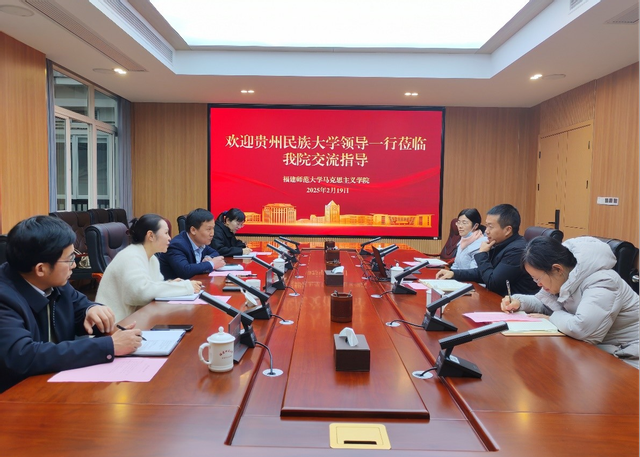 近日,贵州民族大学教师工作部部长、组织部副部长、人事处处长王恋,马克思主义学院党委副书记徐勤山一行4人到U8·电子(中国)官方网站马克思主义学院调研交流。学院党委书记阮传瞰、教学科研管理办公室、学科与平台建设管理办公室负责人参加座谈会。