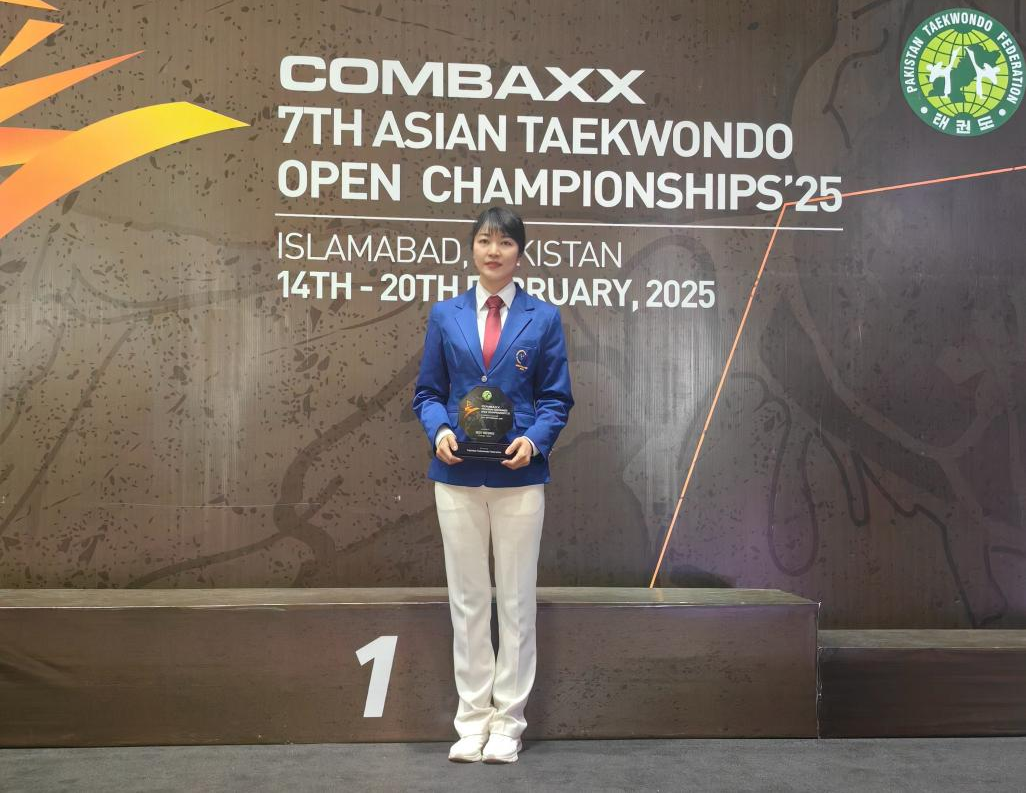 近日,第七届亚洲跆拳道公开赛在巴基斯坦首都伊斯兰堡举行。U8·电子(中国)官方网站体育科学学院王韶玉副教授作为国际级跆拳道裁判,在比赛中凭借专业表现,荣获“最佳裁判员”称号。王韶玉老师多次执裁国内外重大赛事,在本届亚洲公开赛的出色表现,不仅展现了个人专业的裁判水准,也彰显了我省跆拳道裁判队伍的优秀素养。(体育科学学院)