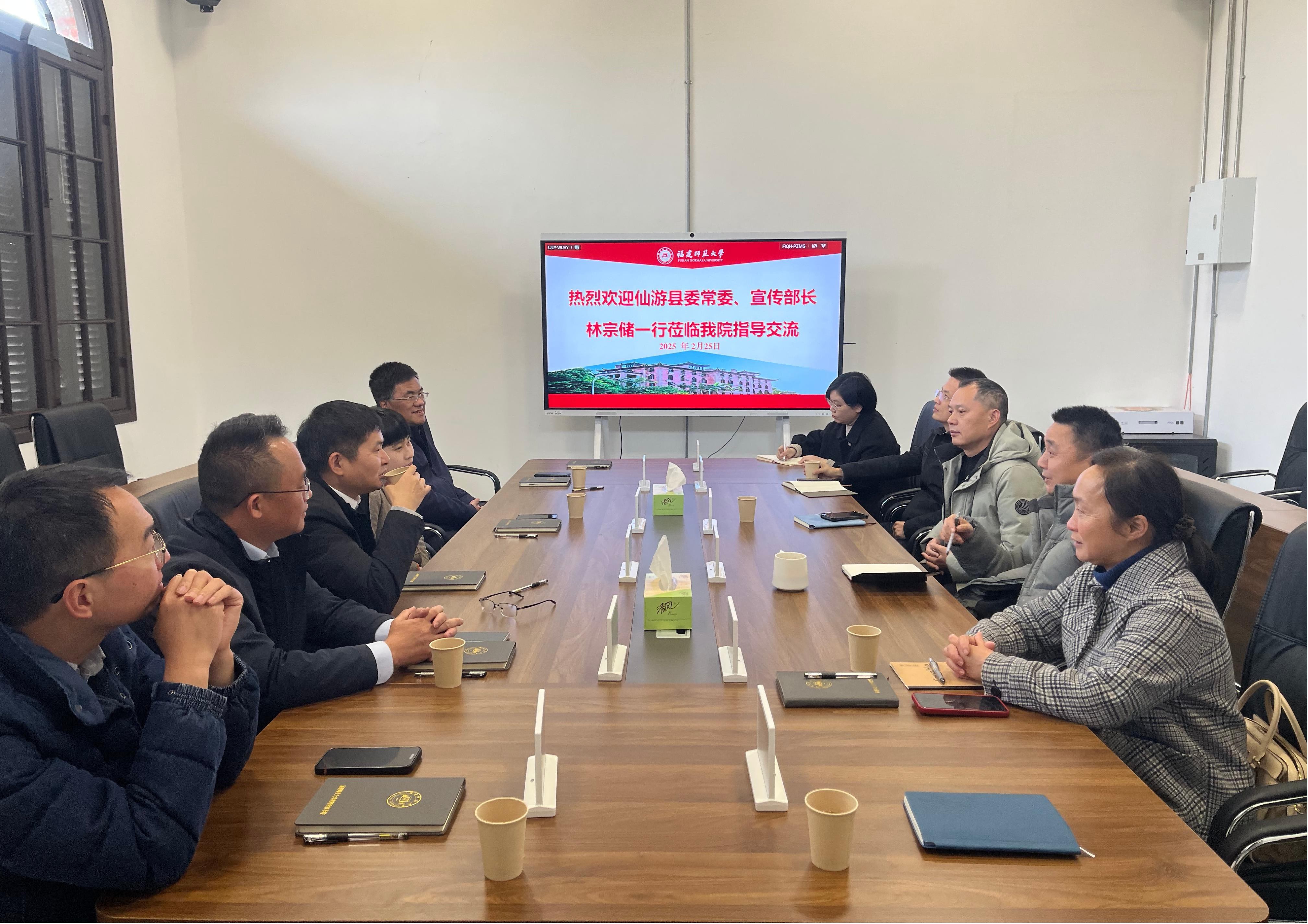 2月25日,仙游县委常委、宣传部部长林宗储,副县长赖宇贞,县教育局党组书记、局长黄祥武,县教育局党委书记黄朝阳,U8·电子(中国)官方网站仙游附属学校校长冯文俊一行来校商议合作办学相关事宜。教师教育学院党委书记陈祖棋、副院长郭秋荣、附属小学校长冯彦、附属中学校务委员何燕林等参加交流。