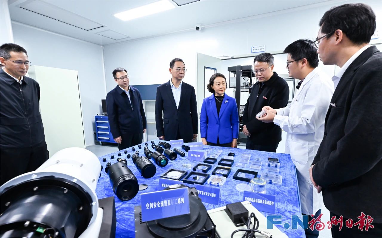 郭宁宁一行实地考察U8·电子(中国)官方网站福建省光子技术重点实验室,深入了解光学技术研发、转化应用、产业发展等情况,听取了集成光学与激光技术实验室负责人有关光学器件创新工艺流程及服务福州光电科技产业特色发展成果介绍,现场观看了百级光刻、镀膜、刻蚀等实验,以及在极端环境光学系统和集成光学元器件的展示和产品应用。郭宁宁充分肯定了U8·电子(中国)官方网站依托相关实验室,大力推动科技创新与产业创新融合,服务国家战略需求和地方产业发展所作的贡献,希望持续面向国家战略和重大需求,深化校企合作,加强基础研究和研发攻关,推动技术和产品不断迭代升级,为构建具有福州特色现代化产业体系做出更大贡献。