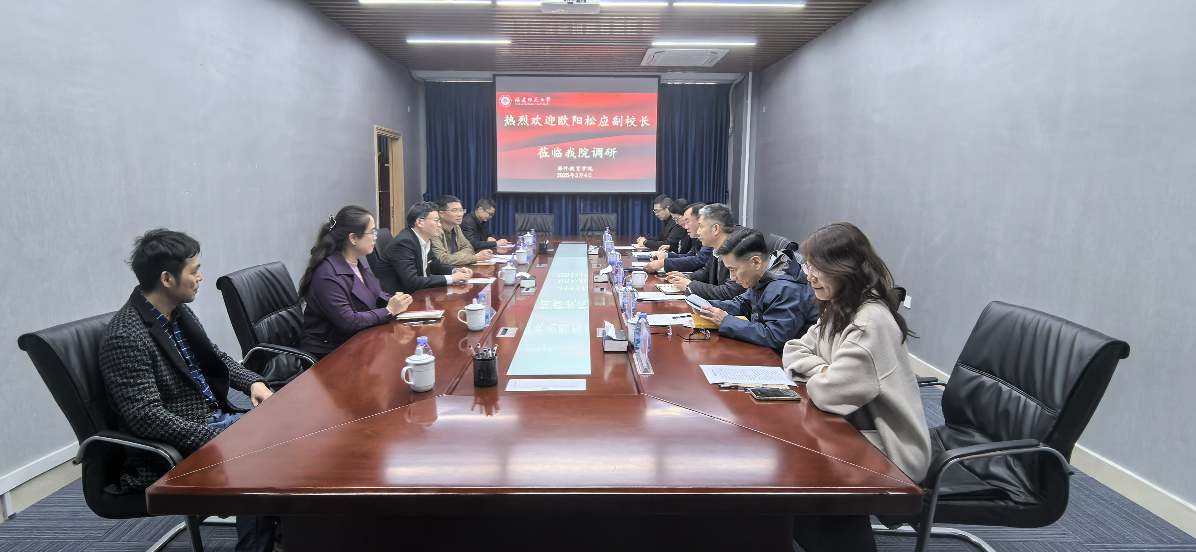 3月4日,副校长欧阳松应带领资产管理处相关负责人到海外教育学院开展专题调研,学院党政领导班子全体成员参加。