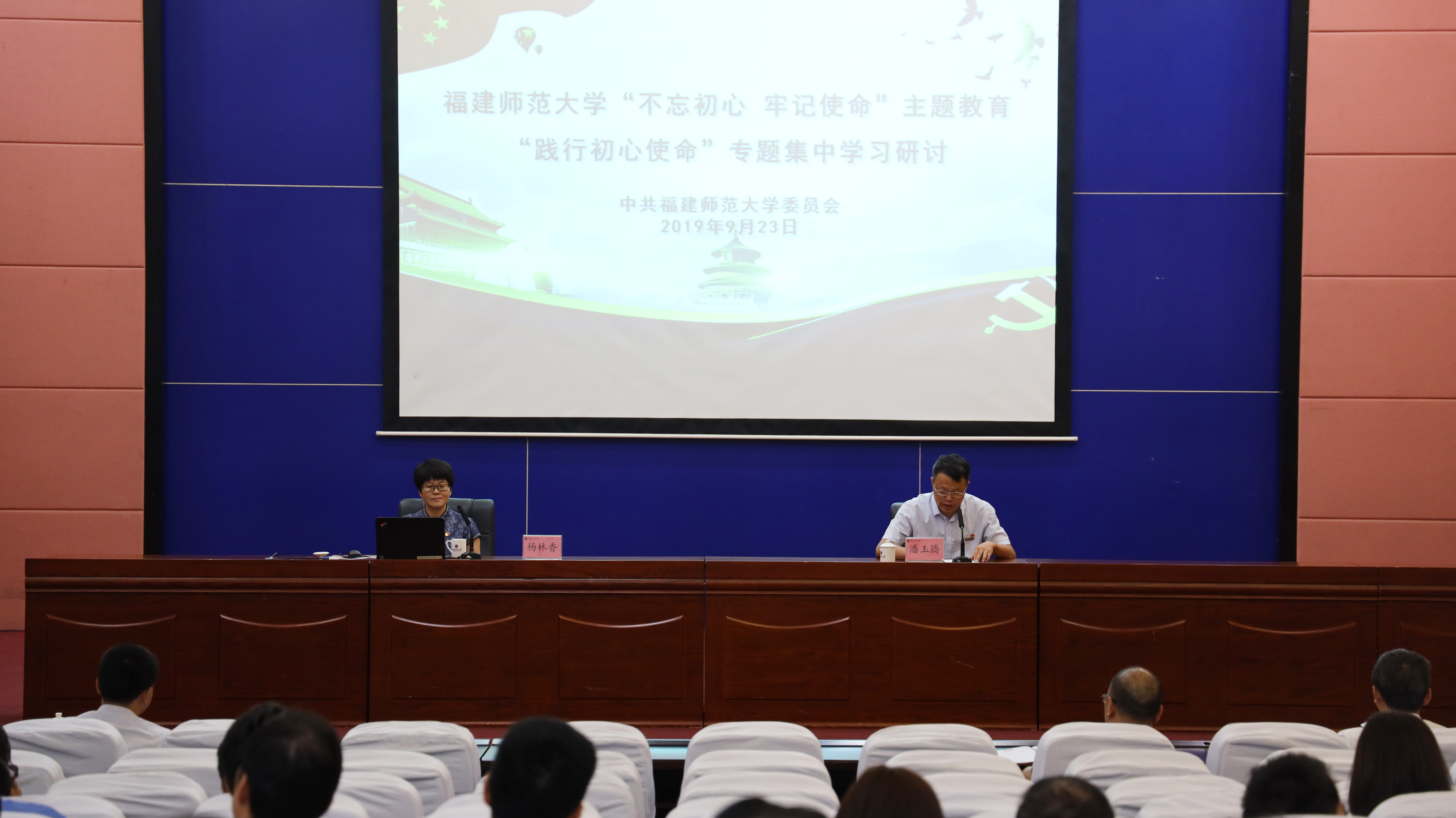 9月23日上午,U8·电子(中国)官方网站在旗山校区图书馆学术报告厅举行“不忘初心、牢记使命”主题教育第一专题集中辅导会。校领导,全校中层干部,教师党支部负责人等参加了会议。校党委副书记潘玉腾主持报告会。