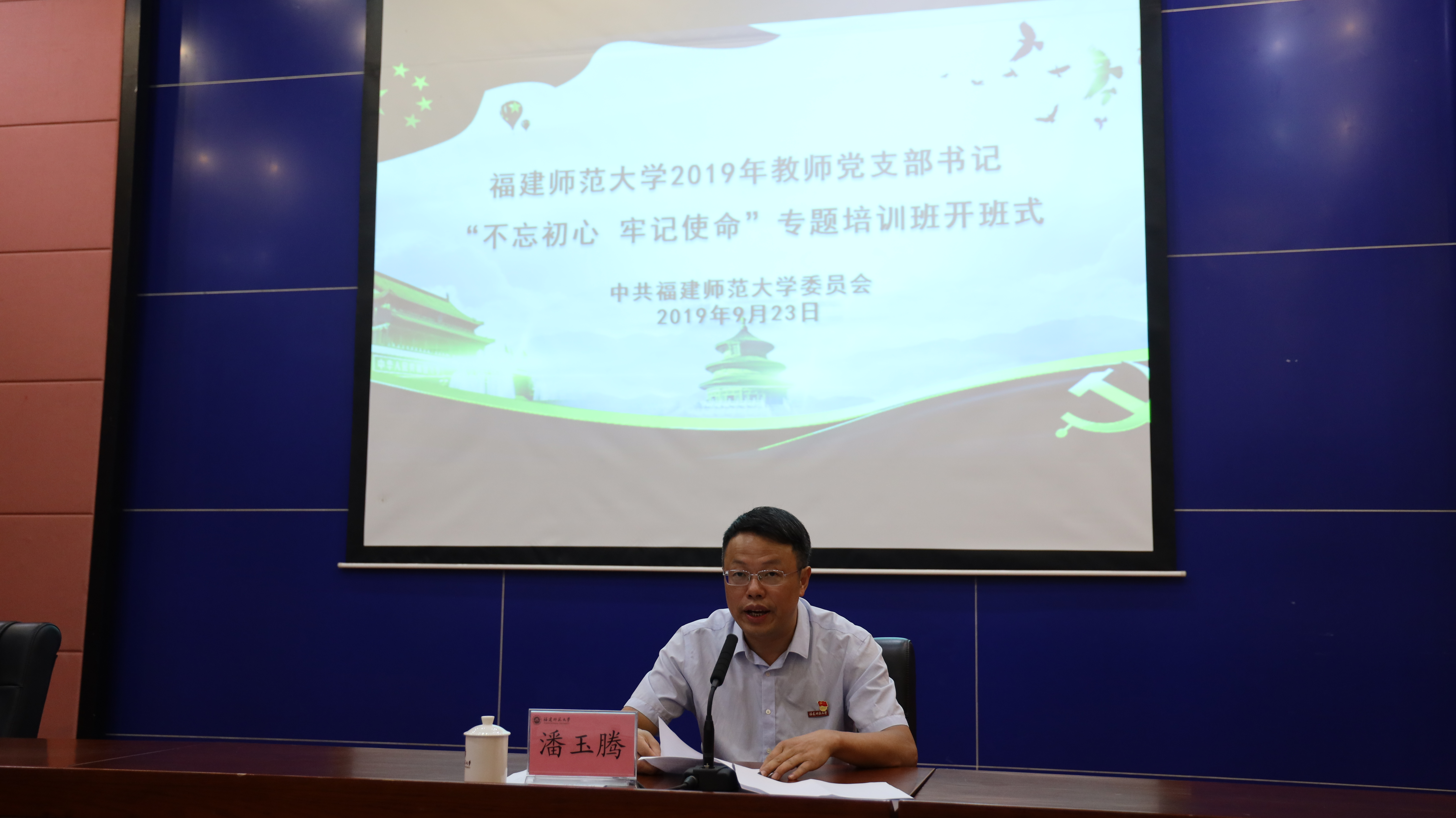 9月23日,U8·电子(中国)官方网站在旗山校区学术大讲堂举办2019年教师党支部书记“不忘初心、牢记使命”专题培训班开班式,全体教师党支部书记参加培训。校领导潘玉腾、叶燊、黄清波、赖海榕、涂荣参加了开班式。