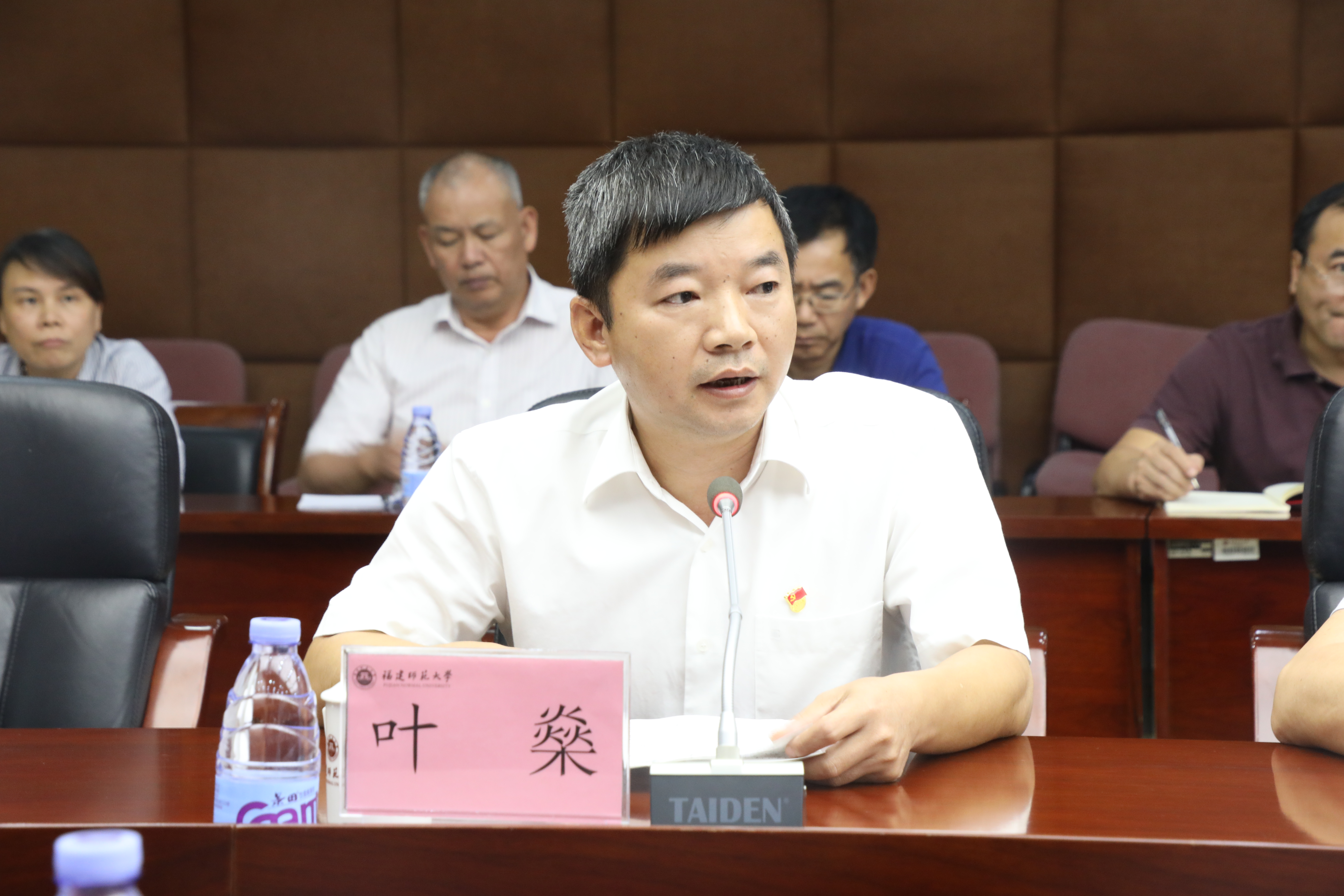 校党委书记李宝银作《不忘办学初心 牢记教育使命 加快推进“双一流”建设》的专题发言。他结合学习习近平总书记关于“不忘初心、牢记使命”和关于教育的重要论述,以及省委于伟国书记在“不忘初心、牢记使命”主题教育工作会议上的讲话等材料,谈了三点心得体会:一是学深悟透习总书记关于初心使命的重要论述,深刻理解“我是谁,从哪里来”“依靠谁,走到现在”“为了谁,为何再出发”,始终高扬马克思主义旗帜,发挥好党的独特优势,牢记党的根本宗旨,在学深悟透中汲取前行力量。二是牢记教育报国、科教兴国的初心,牢记为党育人、为国育才的初心,牢记扎根八闽大地、服务基础教育的初心,始终坚持社会主义办学方向。三是牢记教育使命,始终坚持立德树人根本任务,始终坚持一流办学目标,始终坚持建强师资队伍,始终坚持党的全面领导,始终坚持抓好校园安全稳定工作,用更加优异的工作业绩向新中国成立70周年献礼。