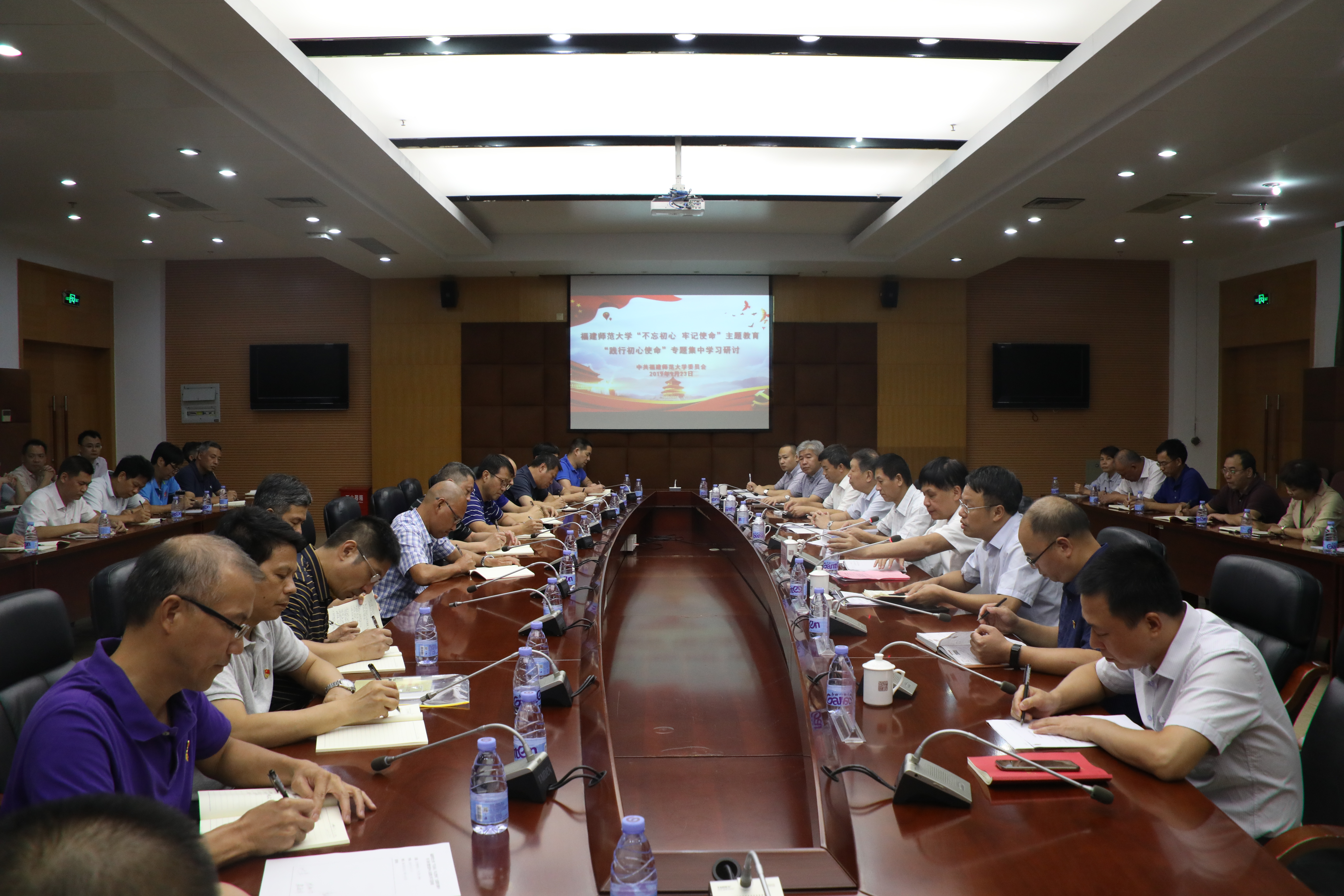 9月23日下午,U8·电子(中国)官方网站在旗山校区开展“不忘初心、牢记使命”主题教育“践行初心使命”专题集中学习研讨。省委第十一巡回指导组组长陈乙熙、副组长尉纬、成员吴忠正专程莅临指导。校领导李宝银、潘玉腾、叶燊、黄清波、赖海榕、涂荣参加了集中学习研讨。学校二级单位党组织负责人、机关部处负责人、全体教师党支部书记参加了集中学习研讨。