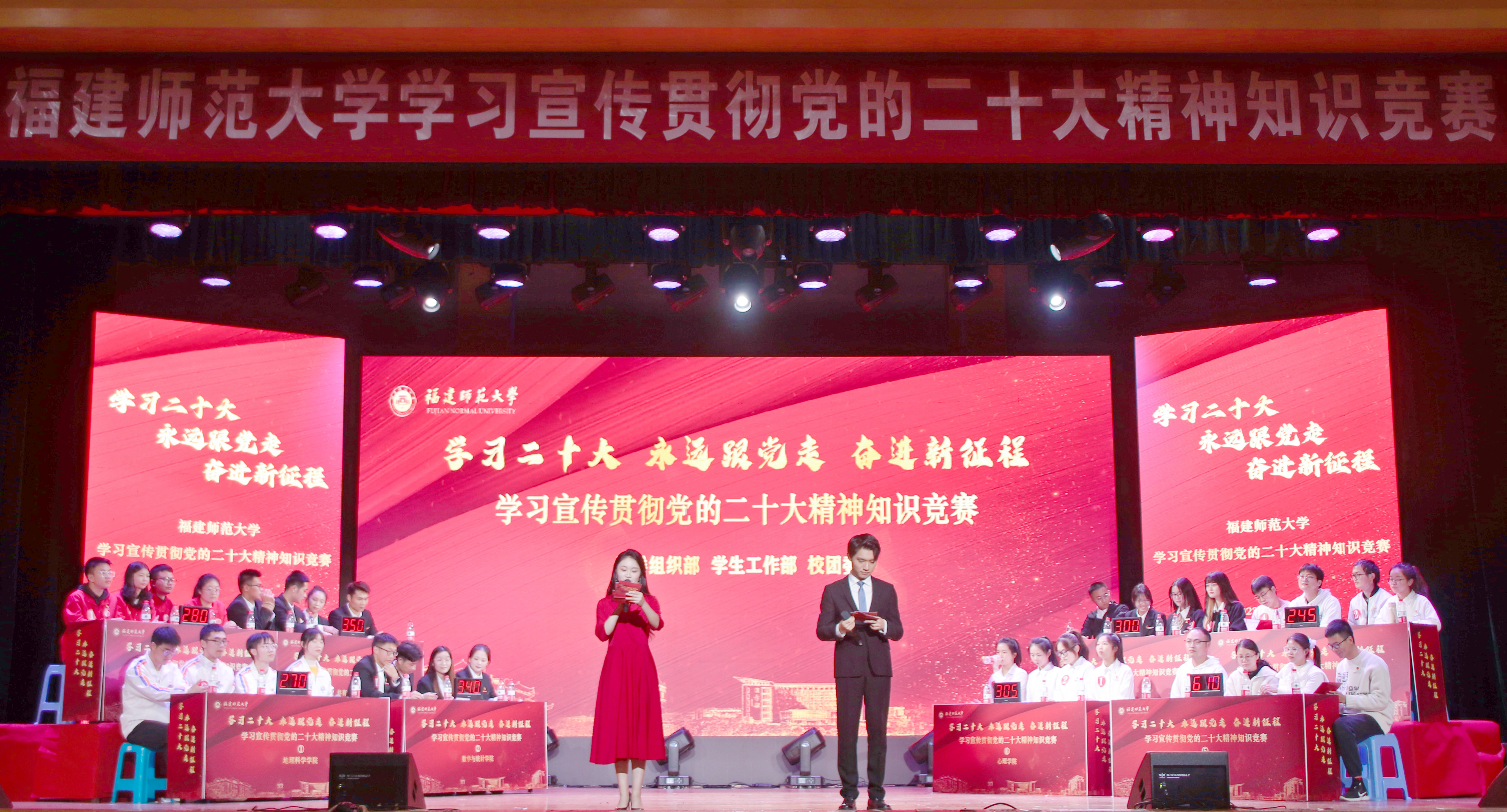 12月3日,由校党委组织部、学生工作部、团委主办的“学习二十大 永远跟党走 奋进新征程”学习宣传贯彻党的二十大精神知识竞赛决赛在旗山校区青春剧场举办。