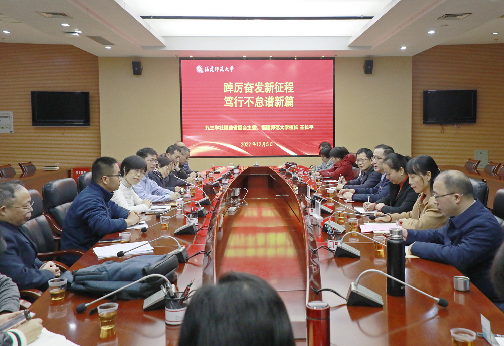12月5日,九三学社福建省委会主委、校长王长平深入U8·电子(中国)官方网站九三学社基层组织,宣讲中共二十大精神。统战部、九三学社U8·电子(中国)官方网站委员会部分骨干成员参加。