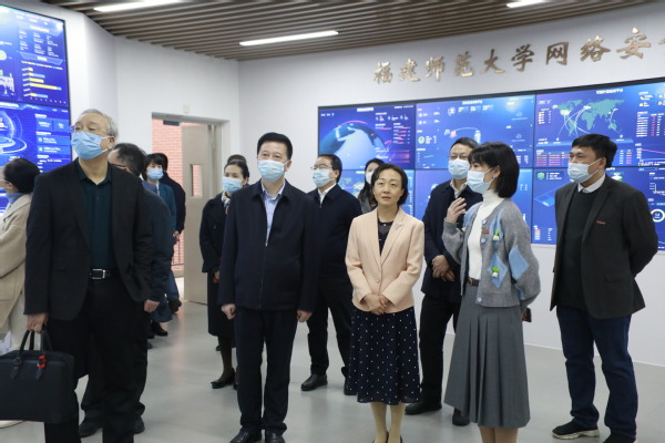 12月12日,省委常委、常务副省长郭宁宁,省政府副秘书长尤思德、颜志煌,省委宣传部副部长、省委网信办主任张远,省委教育工委书记、省教育厅厅长林和平,省数字福建建设领导小组办公室(福建省大数据管理局)主任(局长)吴宏武,省委网信办副主任黄逸群等一行莅校调研,校党委书记潘玉腾、副书记陈晓红,党政办公室、网络安全与密码技术福建省重点实验室负责人陪同调研。