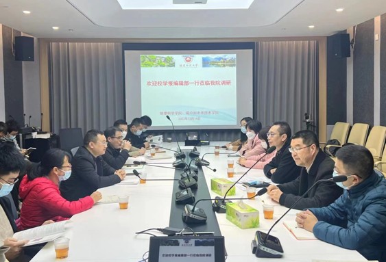 调研围绕如何拓宽稿源,提高学报质量,突破发展瓶颈;如何加强学报与学科研究、学科发展之间的支撑关系;如何做好选题策划、栏目组织以及学术成果的宣传推广等问题展开深入交流。学院对学报自然版近期推出的首届青年编委招募活动表示关注,期待该活动能给予青年教师更多的学术锻炼平台,更好地服务作者读者、服务教学科研、服务学科建设。