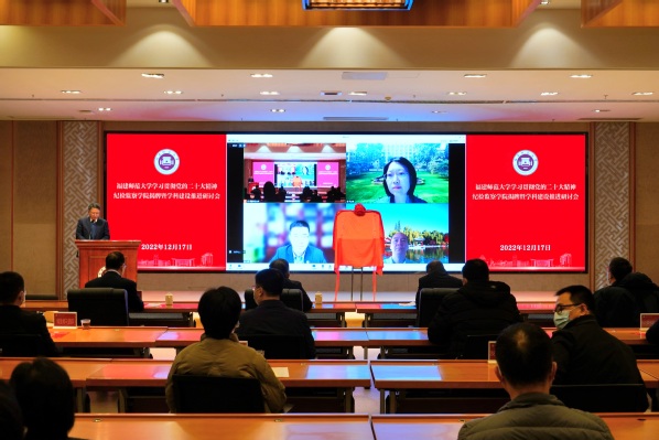 12月17日,“学习贯彻党的二十大精神 纪检监察学院揭牌暨学科建设推进研讨会”在旗山校区举行。省教育厅党组成员、副厅长(正厅长级)刘健,省纪委监委第三纪检监察室主任黄清波,清华大学党委副书记、纪检监察研究院院长过勇,中国纪检监察学院党委副书记兼纪委书记蔡志强,中共中央党校(国家行政学院)政治和法律教研部副主任(主持工作)封丽霞,校党委书记潘玉腾,校长王长平,副校长陈庆华,校纪委书记、省监委驻U8·电子(中国)官方网站监察专员林月恩,以及有关职能部门、纪检监察学院负责人和师生代表参加了会议。会议由陈庆华主持。