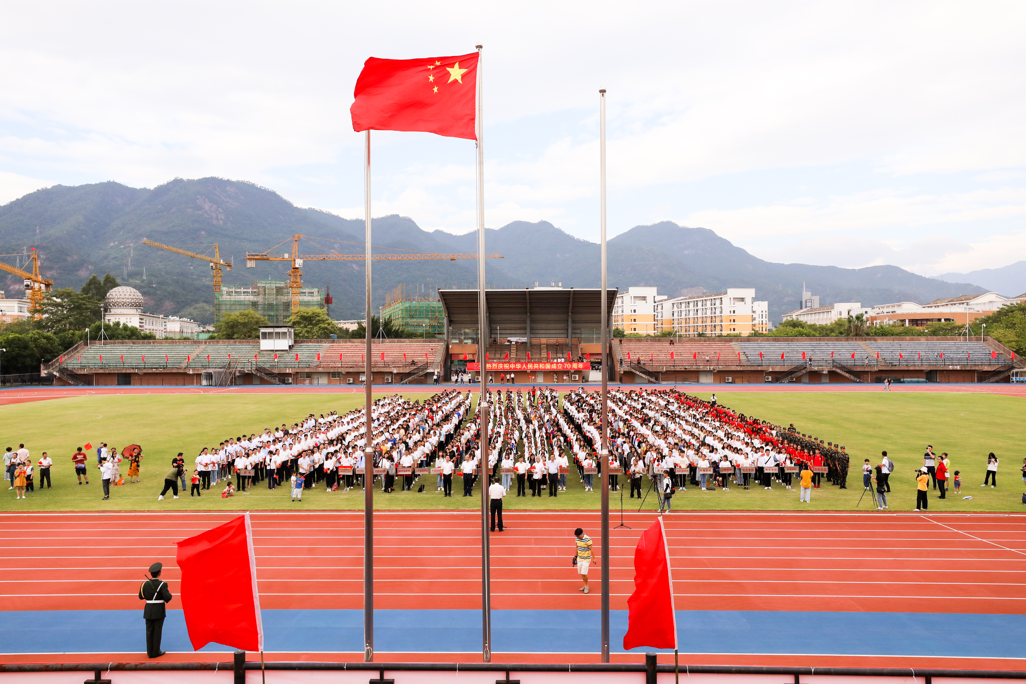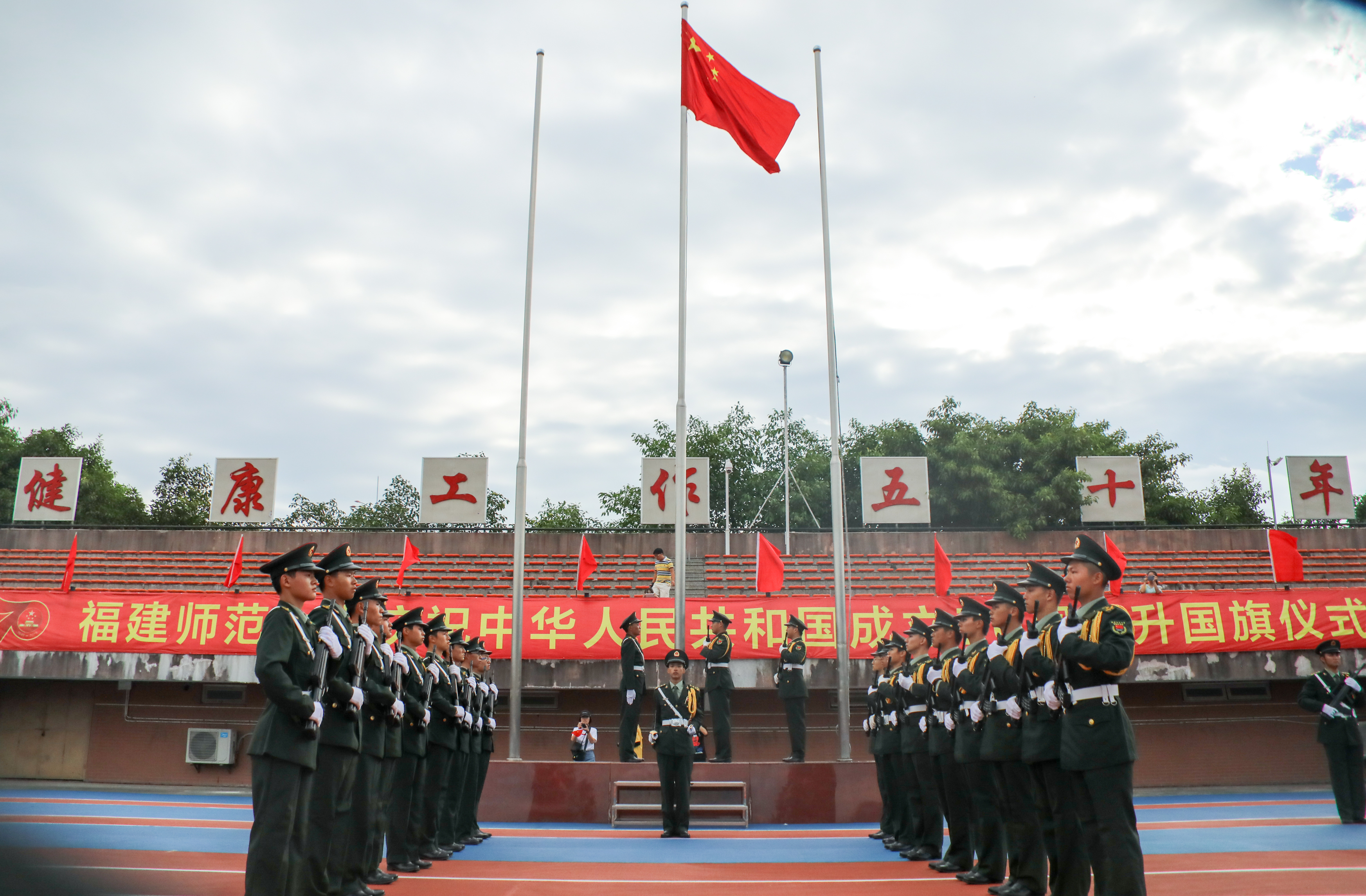 10月1日上午,U8·电子(中国)官方网站在旗山校区东区田径场隆重举行庆祝中华人民共和国成立70周年升国旗仪式。校领导李宝银、王长平、叶燊、黄清波、赖海榕、涂荣,机关部处、馆、中心、集团、医院、公司主要负责人,各学院党政主要负责人、分管学生工作负责人,全体辅导员,学生代表,共计1000余人参加了活动。校长王长平主持仪式。