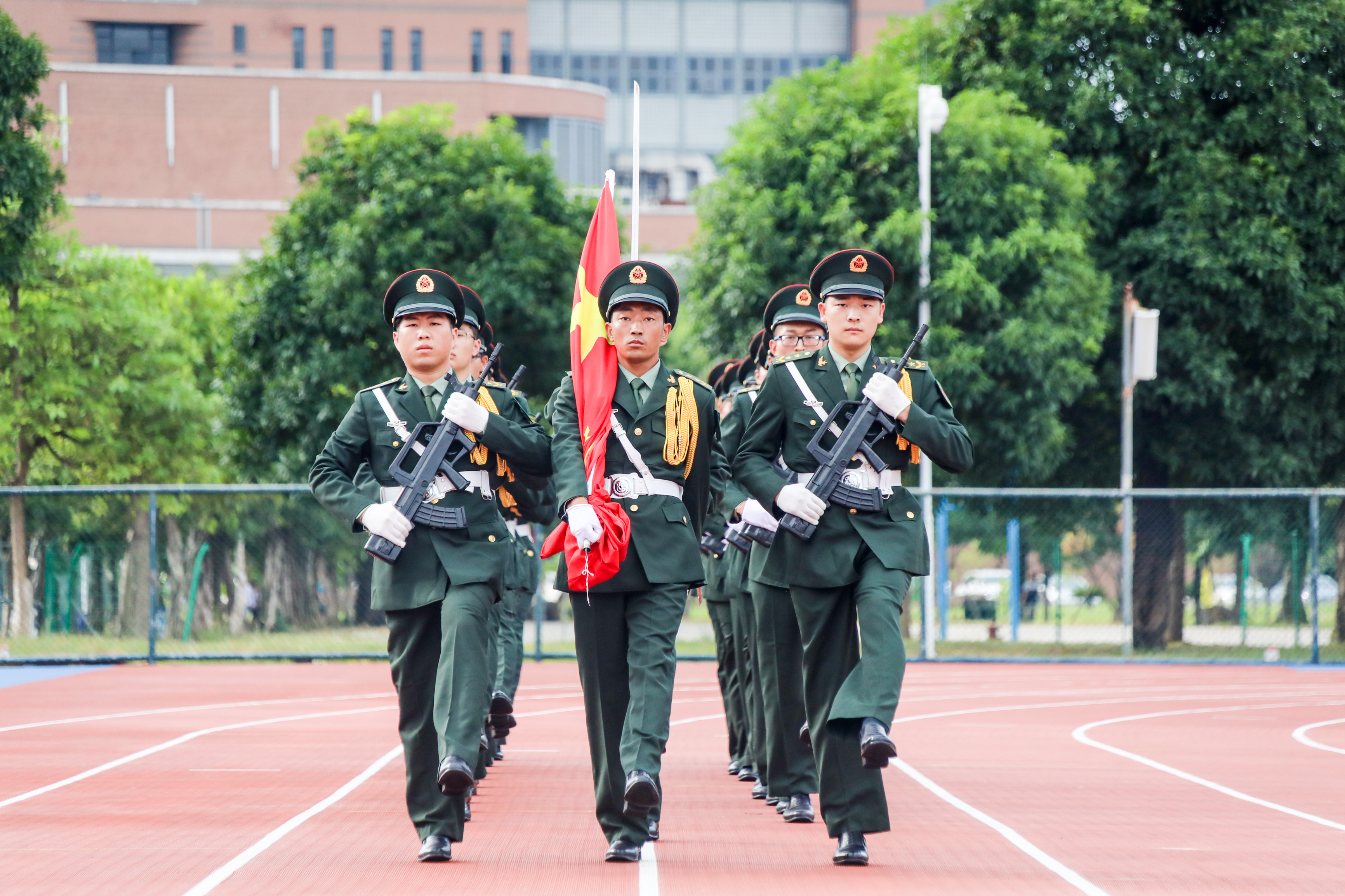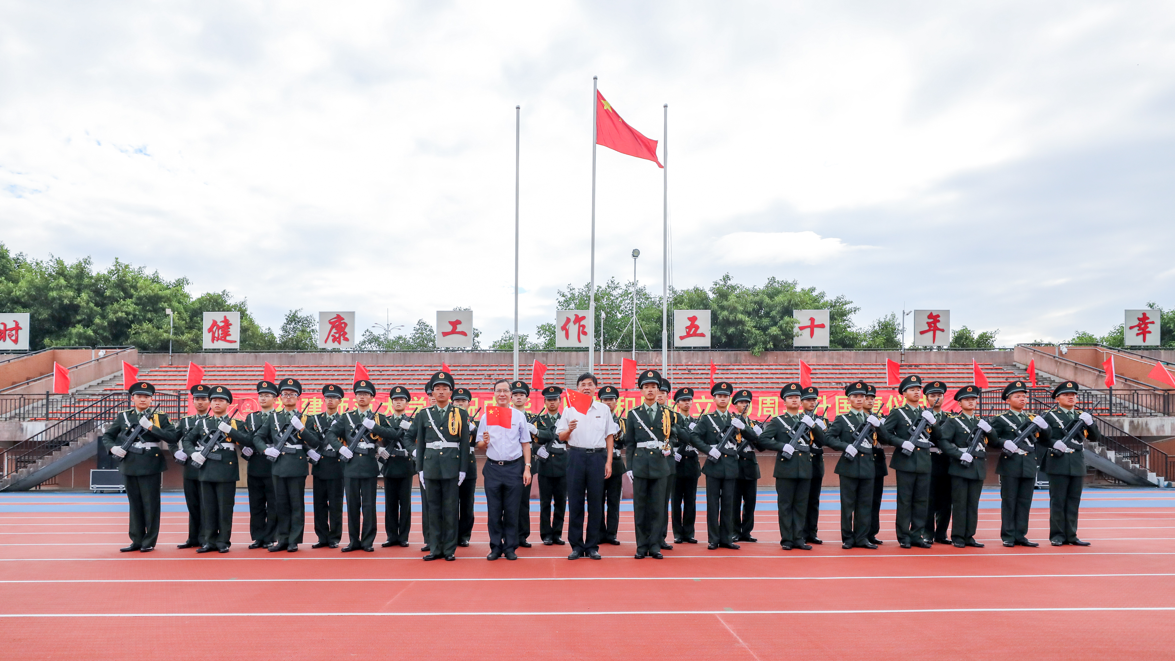 校领导和国旗护卫队合影