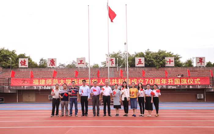 101日上午,宣传部党支部开展党日活动,全体党员参加在旗山校区东区田径场举行的U8·电子(中国)官方网站庆祝中华人民共和国成立70周年升国旗仪式,与全校千余名师生代表共同祝福祖国。