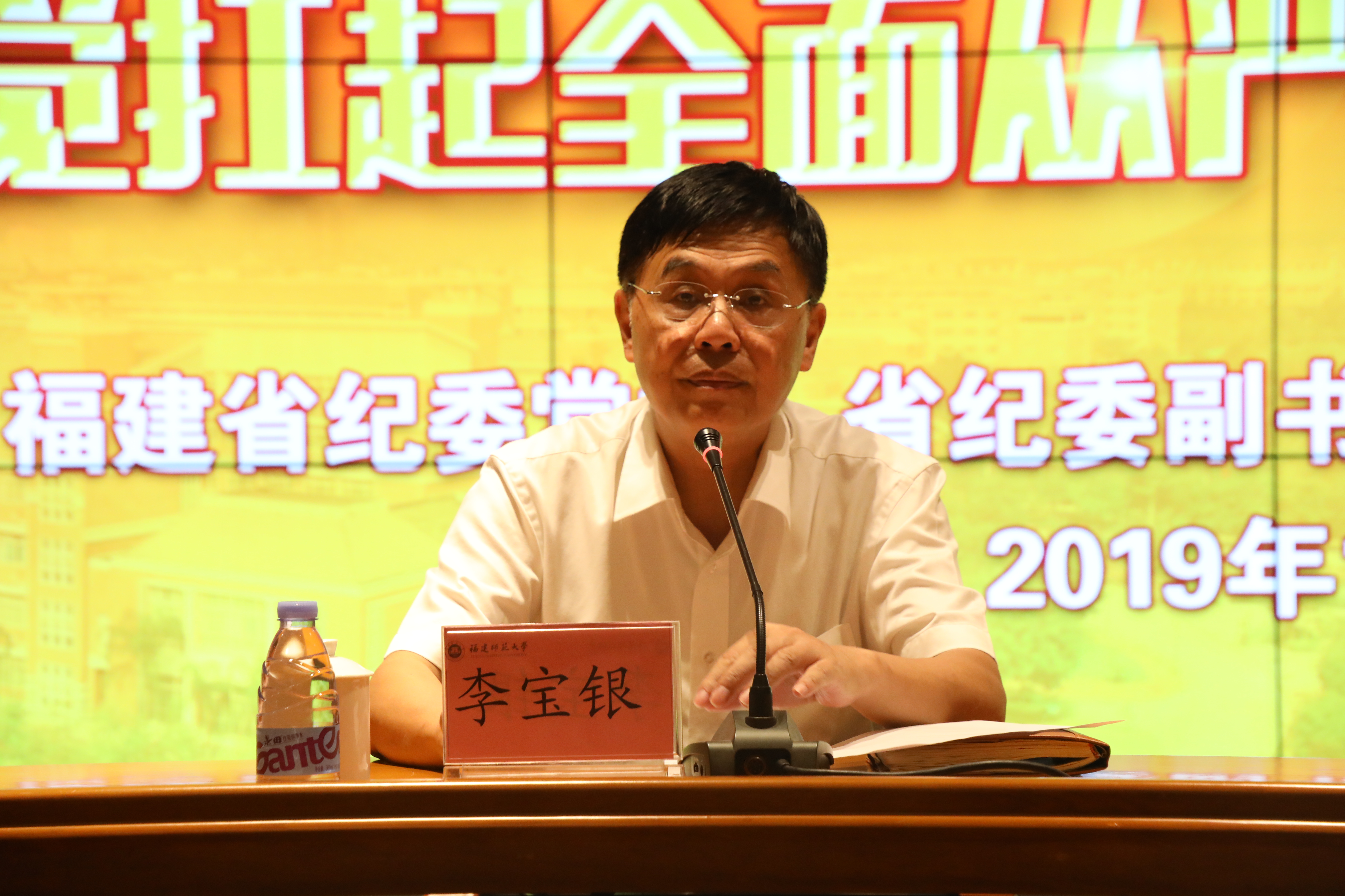 李宝银在总结讲话中指出,薛云官同志的报告对我们深入学习贯彻习近平新时代中国特色社会主义思想、扎实推进全面从严治党向纵深发展,具有十分重要的指导意义。他强调,要紧密结合学校正在开展的“不忘初心、牢记使命”主题教育,进一步学懂弄通做实习近平新时代中国特色社会主义思想,坚决扛起全面从严治党的政治自觉、政治责任、政治担当,全面落实省委“八个坚定不移”和省纪委“五抓五重”的要求,使学校始终成为坚持党的领导的坚强阵地,为学校加快推进“双一流”建设营造风清气正的政治生态和育人环境。