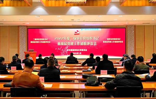 校党委书记潘玉腾对述职情况逐一进行点评并作讲话,他充分肯定2022年基层党建工作取得的成绩,也指出存在的问题,并就进一步加强学校党建工作、引领推动事业发展提出三点意见:一要提高政治站位,深入学习贯彻党的二十大精神,善于运用政治观点和政治眼光看待本职工作,切实履行好领导责任和政治责任;二要坚持党管发展,科学把握抓党建和促发展、聚人才和树品牌的关系,提升党建品牌的功能、内涵和价值;三要夯实党建基础,狠抓薄弱环节,推动责任层层传递、压力层层传导、任务层层落实,推进基层党建工作全面提升全面创优。
