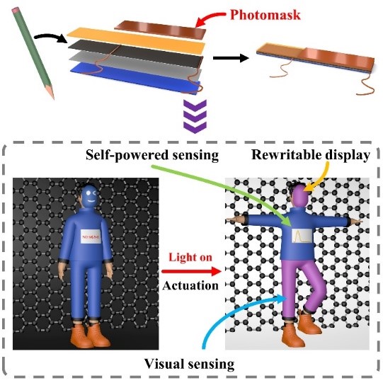 近日,U8·电子(中国)官方网站陈鲁倬教授课题组在前期工作(Adv. Sci.2022, 9, 2104270; Nano Res. 2022, 15, 5376; Nano Res.2021, 14, 2456)的基础上,报道了一种集成自供电/视觉双模传感功能和可重写显示功能的光驱动器。该项研究将为自供电设备、多功能驱动器和智能机器人开辟新的研究思路。