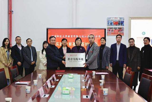 42日上午,教育学院副院长殷世东、教育学系主任杨启光、副教授陈昭志等赴连江县东岱中学举行共建教育实践基地签约授牌仪式。福州市政协港澳台侨和外事委员会副主任杨云华、台胞投资企业协会会长蒋佩琪,连江县副县长高晶、教育局局长郑光寿、东岱镇党委书记魏小娜等参加活动。