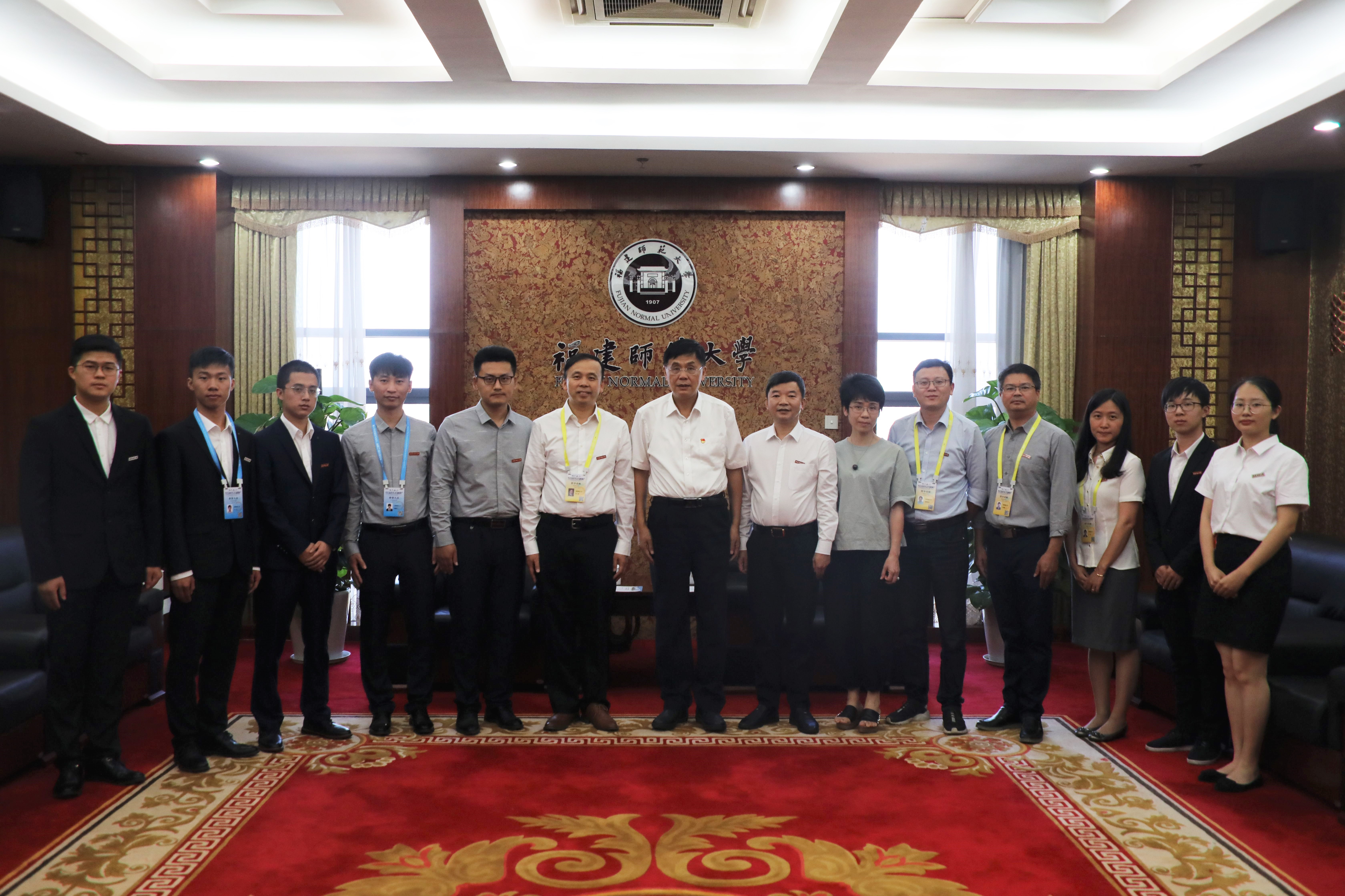 参赛团队于10月16日返校,校党委书记李宝银第一时间看望慰问参赛师生,代表学校祝贺获奖师生。他指出,获奖团队历经校赛、省赛、国赛,最终走上全国总决赛的大舞台,与各路高手比拼,充分展示了师大青年学子的青春风采、百年学府的历史积淀、立德树人的显著成效。他强调,同学们要以赛促学,在创新创业中增长智慧才干、书写灿烂青春;有关职能部门、各学院和广大教师要以赛促教、以赛促创,认真总结参赛经验,牢牢抓住全面提高人才培养能力这个核心,不断深化教育教学改革,持续完善创新创业教育机制,努力培养更多具有创新精神和实践能力、能够担当民族复兴大任的时代新人。
