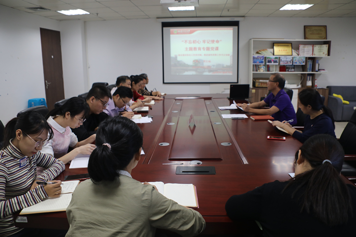 22日,宣传部党支部在校官微工作室开展“不忘初心 牢记使命”主题教育专题党课活动。机关党委委员、宣传部党支部副书记郑文灿为支部全体党员上了一堂名为《落实意识形态工作责任制  推进宣传思想工作守正创新》的党课。