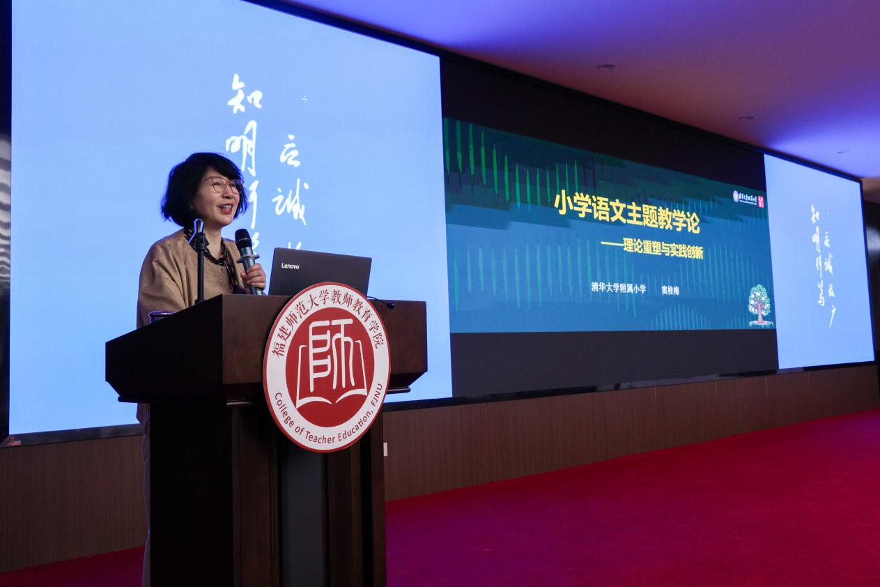 4月12日,教师教育学院邀请清华大学附属小学校长、清华附小集团化办学总校校长、清华大学教育研究院基础教育研究所所长窦桂梅作题为“小学语文主题教学论:理论重塑与价值创新”的专题讲座,讲座由学院院长吴文哲主持。学院师生、U8·电子(中国)官方网站附属小学及其合作校教师代表,以及福建省小学教育一线教师、教研员等近300人参与此次活动。