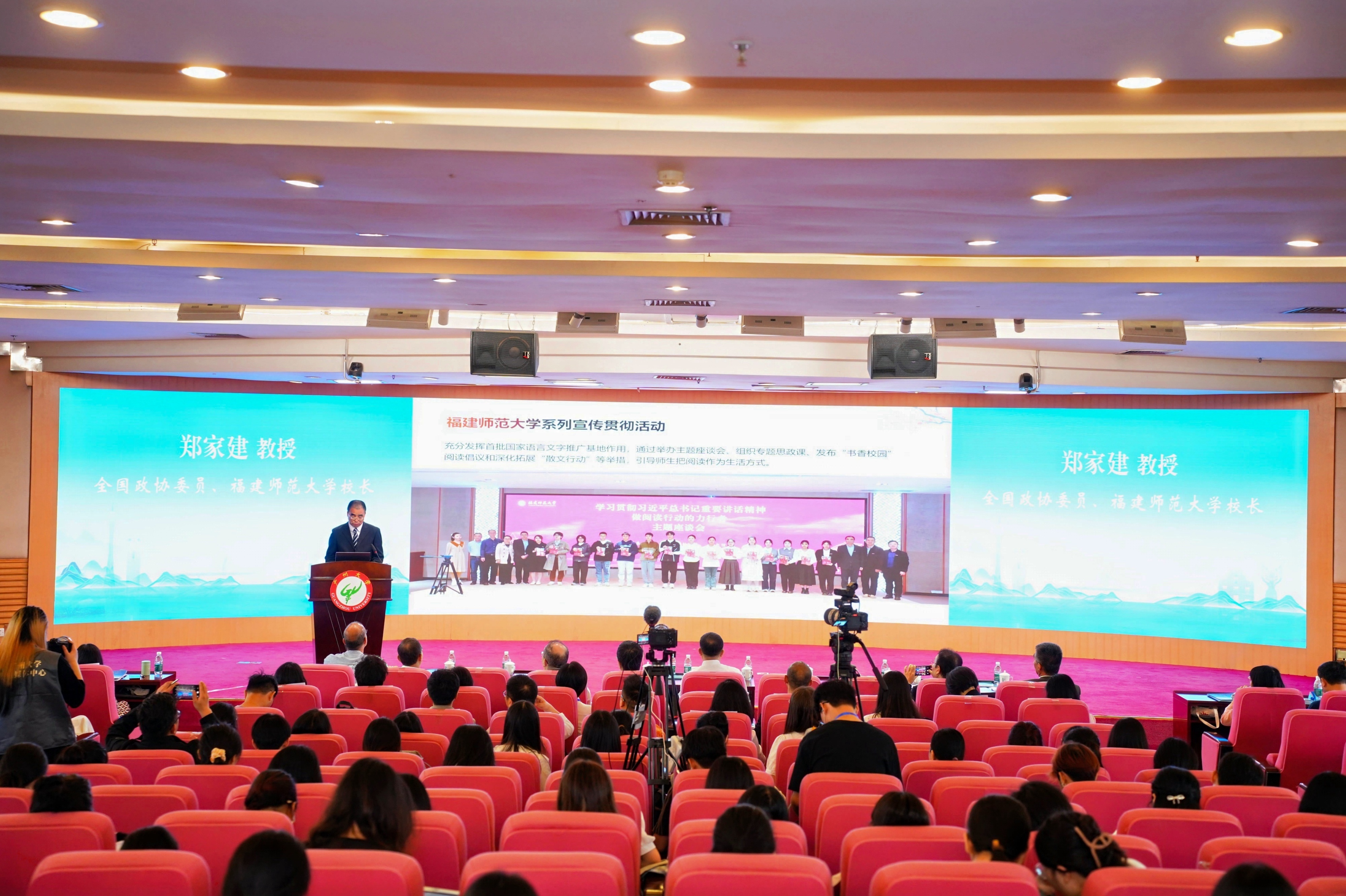 本届阅读大会于4月18日在广州大学举办,由国家语委语用司指导,国家语言文字推广基地(广州大学)、国家语言文字推广基地(深圳大学)等单位主办,以“新知·新智·新质—共享新时代阅读之光”为主题。U8·电子(中国)官方网站校长郑家建应邀参加大会并作主旨发言。