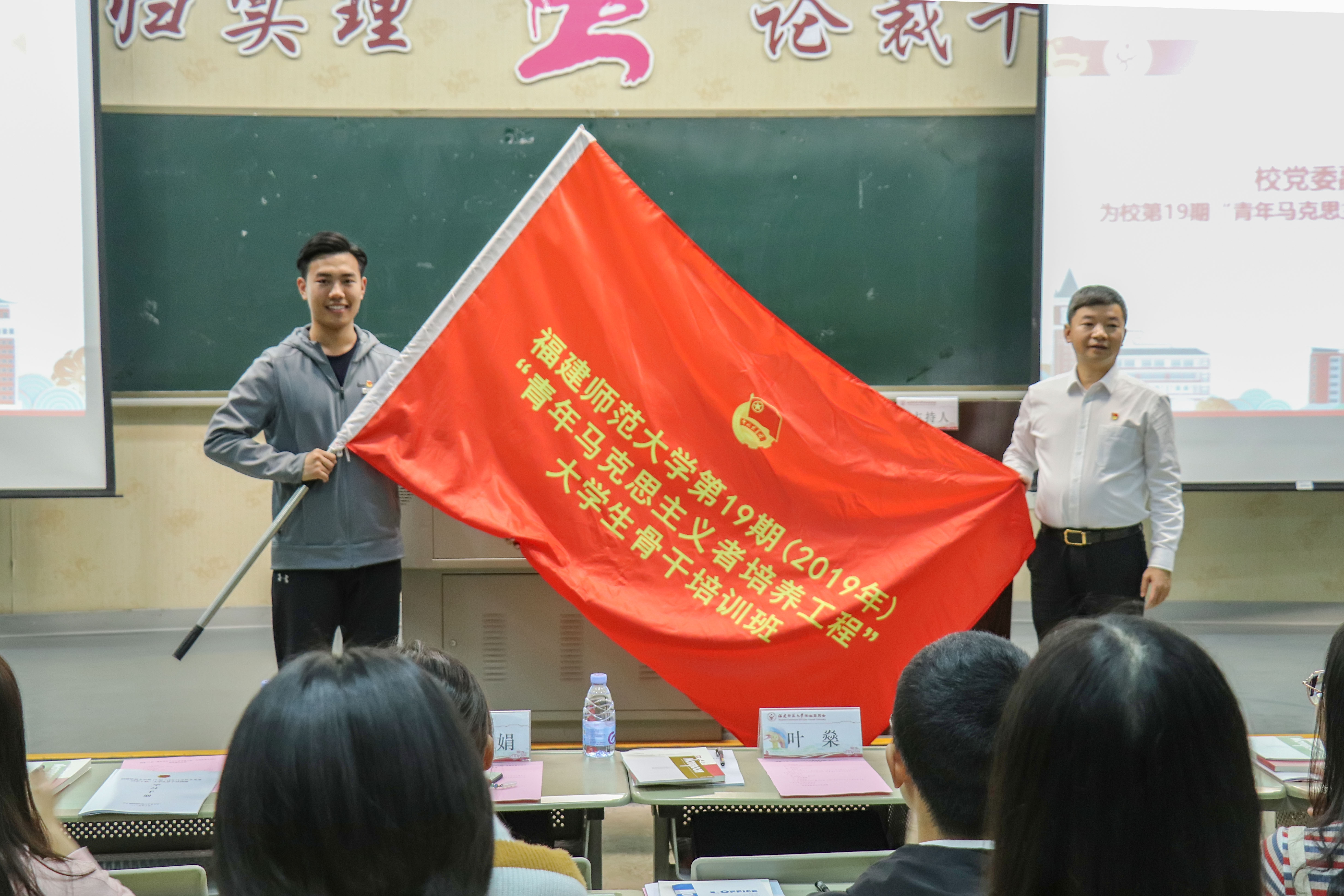 开班式在庄严的国歌中启动,叶燊为培训班学院代表授旗,2018级心理学专业江巧云同学代表全体参训学员发言。
