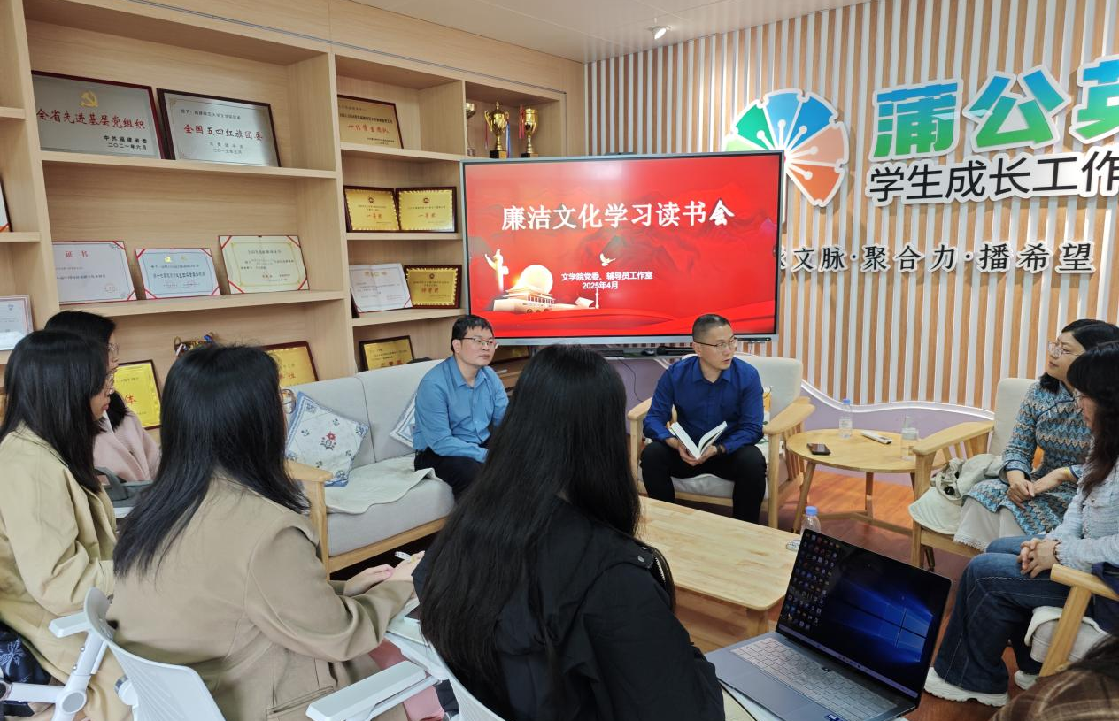 428日,文学院在邵逸夫楼会议室开展廉洁文化主题读书会活动。学院党委副书记、纪委书记刘锦华,陈鸿副教授、平颖副教授,纪检监察学院丘启林老师及学生代表参加。