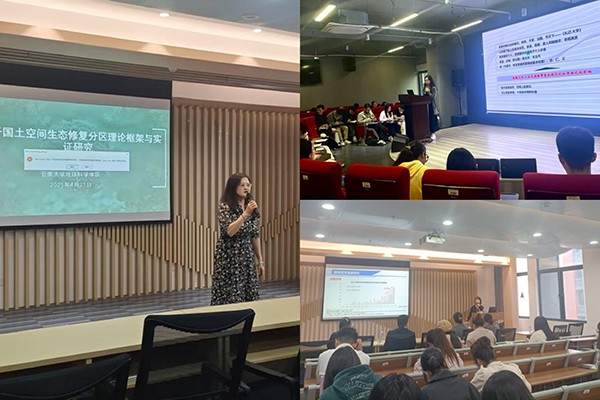赵筱青结合国土空间生态修复分区实例,深入分析了不同区域生态修复的实践经验和成效,为在场师生展示了生态修复在区域可持续发展中的重要作用。