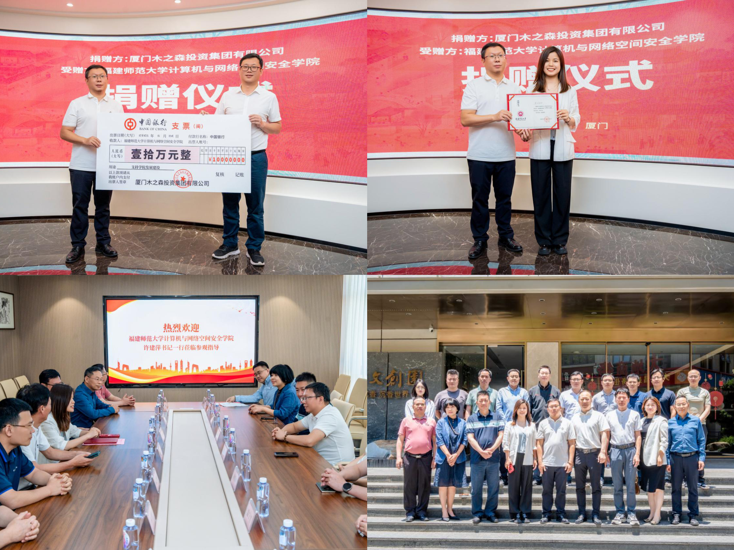 512日上午,计算机与网络空间安全学院在厦门举行廖木森校友助学捐赠仪式。2002级校友、厦门木之森集团董事长廖木森先生向学院捐赠人民币10万元,支持学院发展建设。厦门校友会会长黄健、副会长兼秘书长陈永佟,厦门校友会数计联合分会会长卓文、秘书长温宁晋,原学院党委书记黄荔钦、辅导员黄河良,学院党委书记许建萍、副书记邓胜柱、副院长陈黎飞及各系(专业)有关负责人等出席活动。仪式由厦门校友会数计联合分会副会长陈颖悦主持。