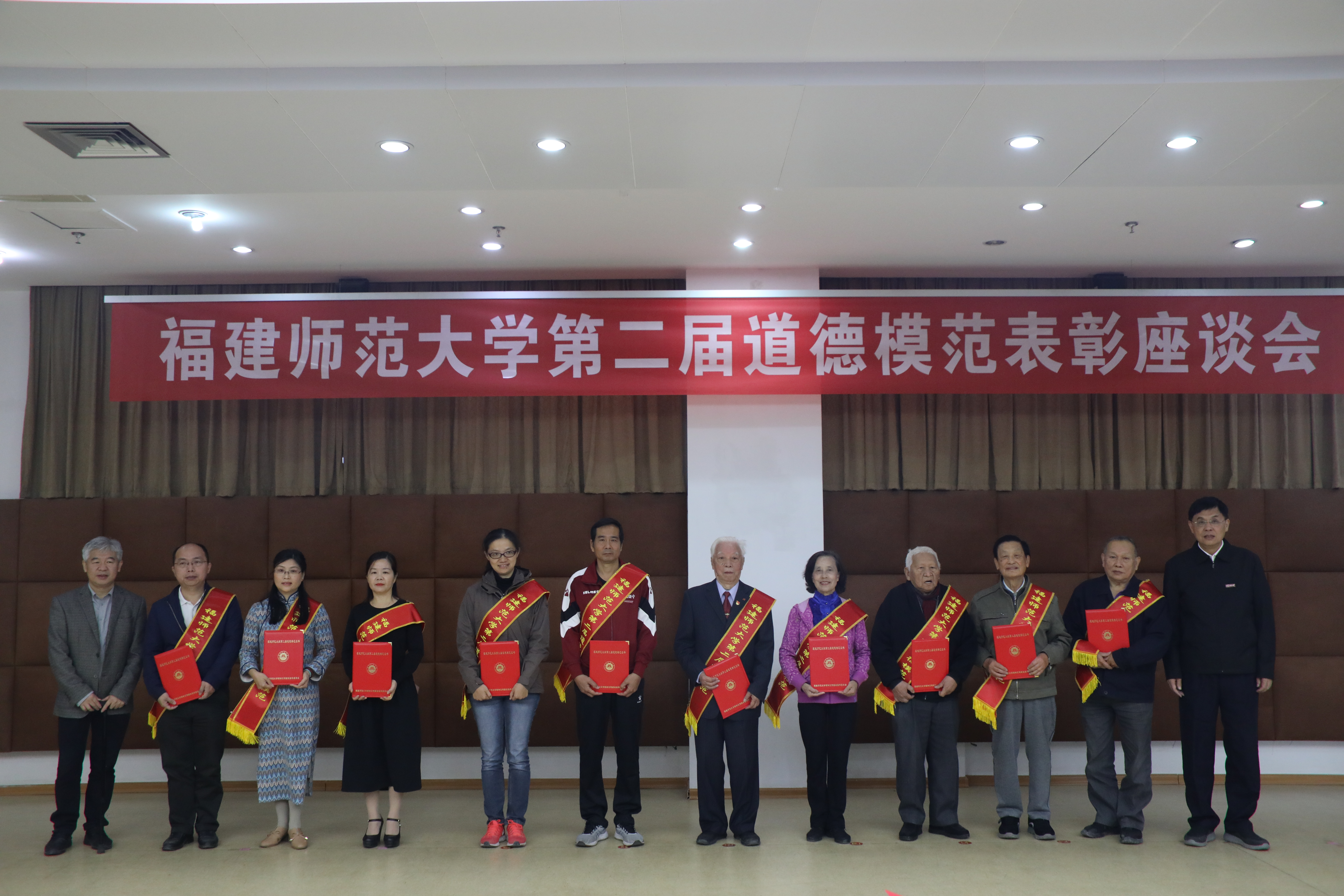 座谈会于11月20日上午在旗山校区第十会议室举行。校领导李宝银、赖海榕,第二届道德模范,宣传部、教师工作部(处)、学生工作部(处)、离退休干部工作处、校工会、各二级单位党组织负责人参加了会议。副校长赖海榕主持座谈会,宣读校文明委表彰决定:社会历史学院王大同等10名同志荣获第二届道德模范称号,附属小学张向红等4名同志荣获第二届道德模范提名奖;校党委书记李宝银为道德模范颁发荣誉证书;10位道德模范分别发言,与现场教师分享了心得体会。