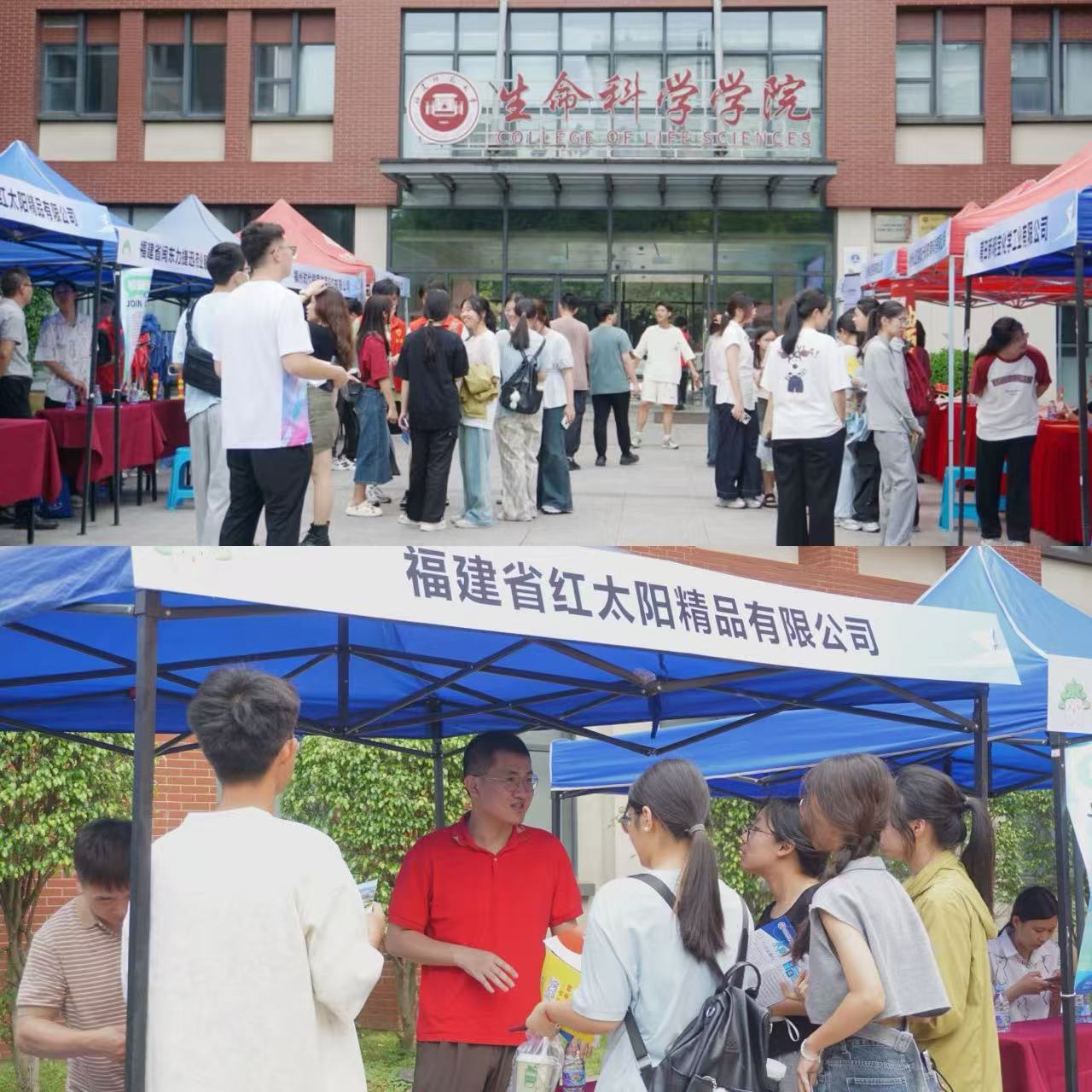 近日,生命科学学院在理工楼13号楼广场举办专场招聘会。学院领导张兆文、李明杰,专业教师、毕业班辅导员和2025届毕业生等共同参加。