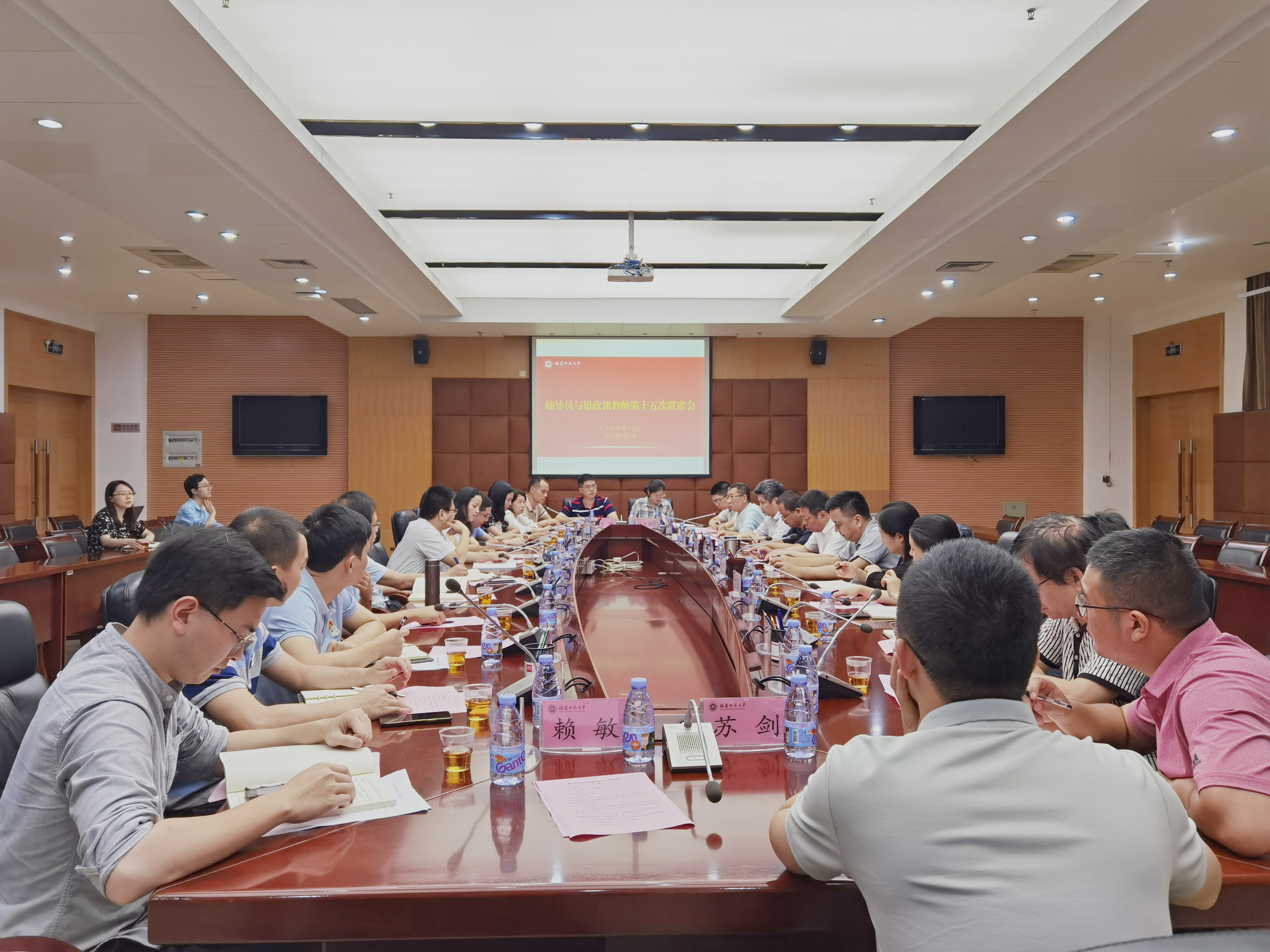 会议于6月4日在旗山校区第十会议室召开。校党委副书记李绚,宣传部、学工部、教工部、教务处、研究生院、马克思主义学院相关负责人,思政课教师和研究生导师代表,部分学院分管学生工作负责人及辅导员代表参加了会议。