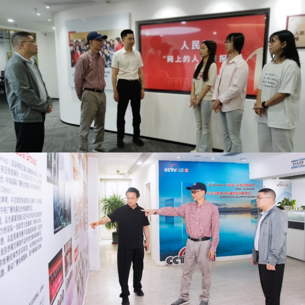 在央视网福建频道,学院一行与钟岷源总编辑及一线采编人员座谈。双方围绕选题合作、重要节点宣传报道以及相关频道栏目合作等深入交流,表示要发挥各自优势,协同共进,共同培养未来的新闻人。