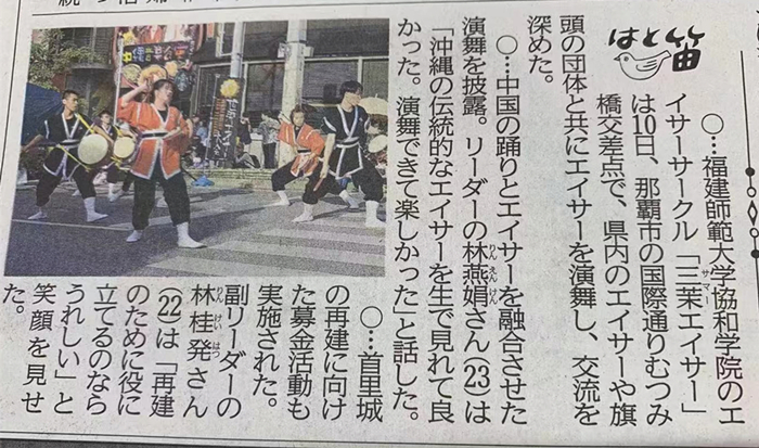 11月9日-11月12日,作为2018年福建省高校太鼓冠军大赛冠军,U8·电子(中国)官方网站协和学院三茉太鼓队一行12人受邀赴日本冲绳县那霸市参加2019年世界太鼓大会。交流团由张鹏程副院长任团长。