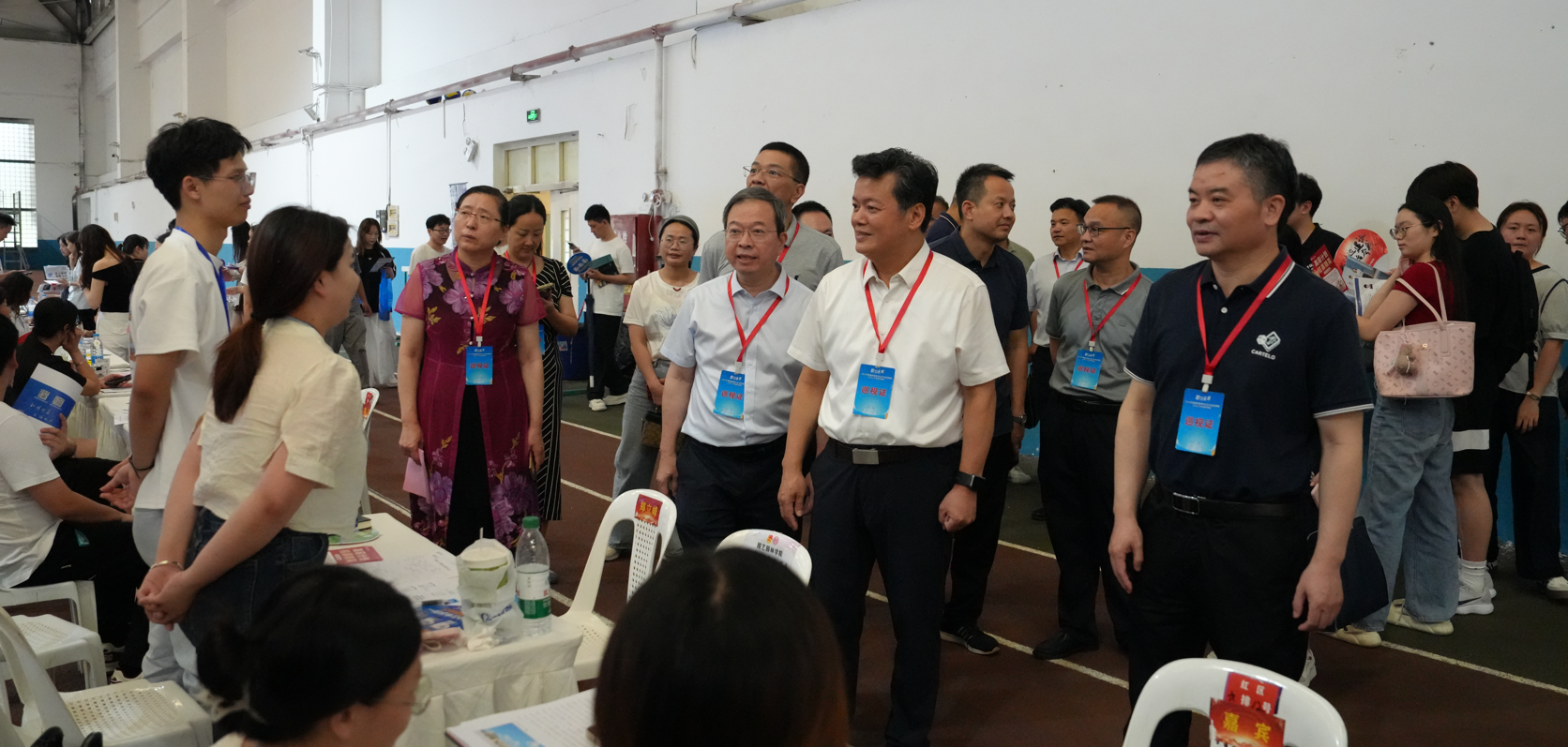 与会领导共同深入招聘会现场,详细了解就业创业政策、用人单位需求和毕业生求职意向,鼓励2025届毕业生抢抓离校前就业关键期尽快实现顺利就业,引导2026届毕业生把握求职前职业规划期做好职业规划。