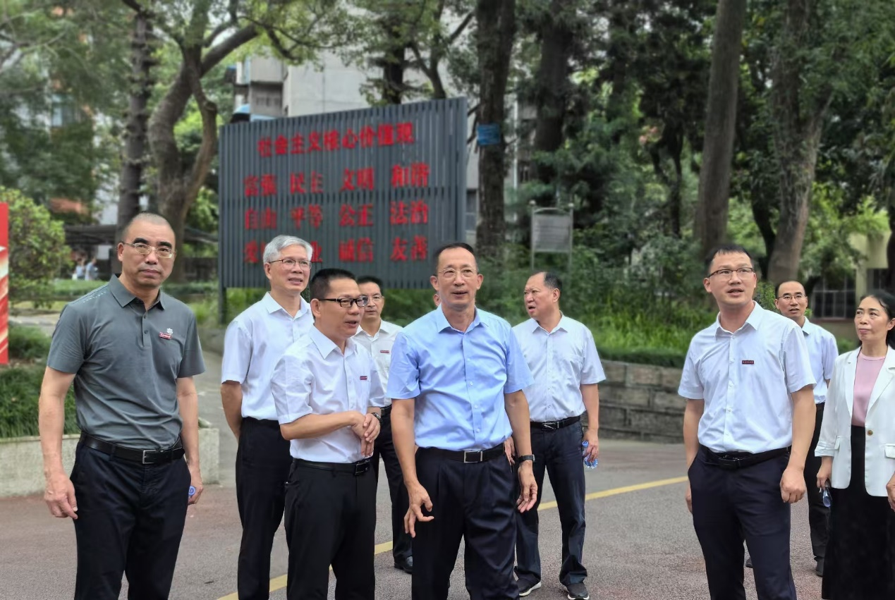 李德金一行实地考察了附中初、高中校区,听取了附中关于初高中融合发展、硬件设施建设、师资队伍发展等有关工作汇报。在院士墙前、求索碑旁,李德金驻足观看,充分肯定附中以侯德榜、陈景润等院士校友精神激励学子勇攀科学高峰的育人传统;在初中部校园,对初中校区规划和天桥建设提出指导性意见,强调要统筹规划满足初高中一体化发展需求。