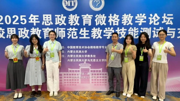 6月27日至30日,由中国教育技术协会微格教学专业委员会主办,内蒙古民族大学承办的2025年思政教育微格教学论坛暨第十四届高校思政教育师范生教学技能测试与交流展示活动顺利举办。马克思主义学院学生表现优异,余欣(指导教师:廖志诚、刘国皇)获得本科生组一等奖,谢未冉(指导教师:刘国皇、岳婕)、胡倩慈(指导教师:刘国皇)获得本科生组二等奖,吴珊娜(指导教师:杨小霞)、刘钰琪(指导教师:杨小霞、黄敬兵)、邝嘉丽(指导教师:杨小霞、李伟达)获得研究生组三等奖。