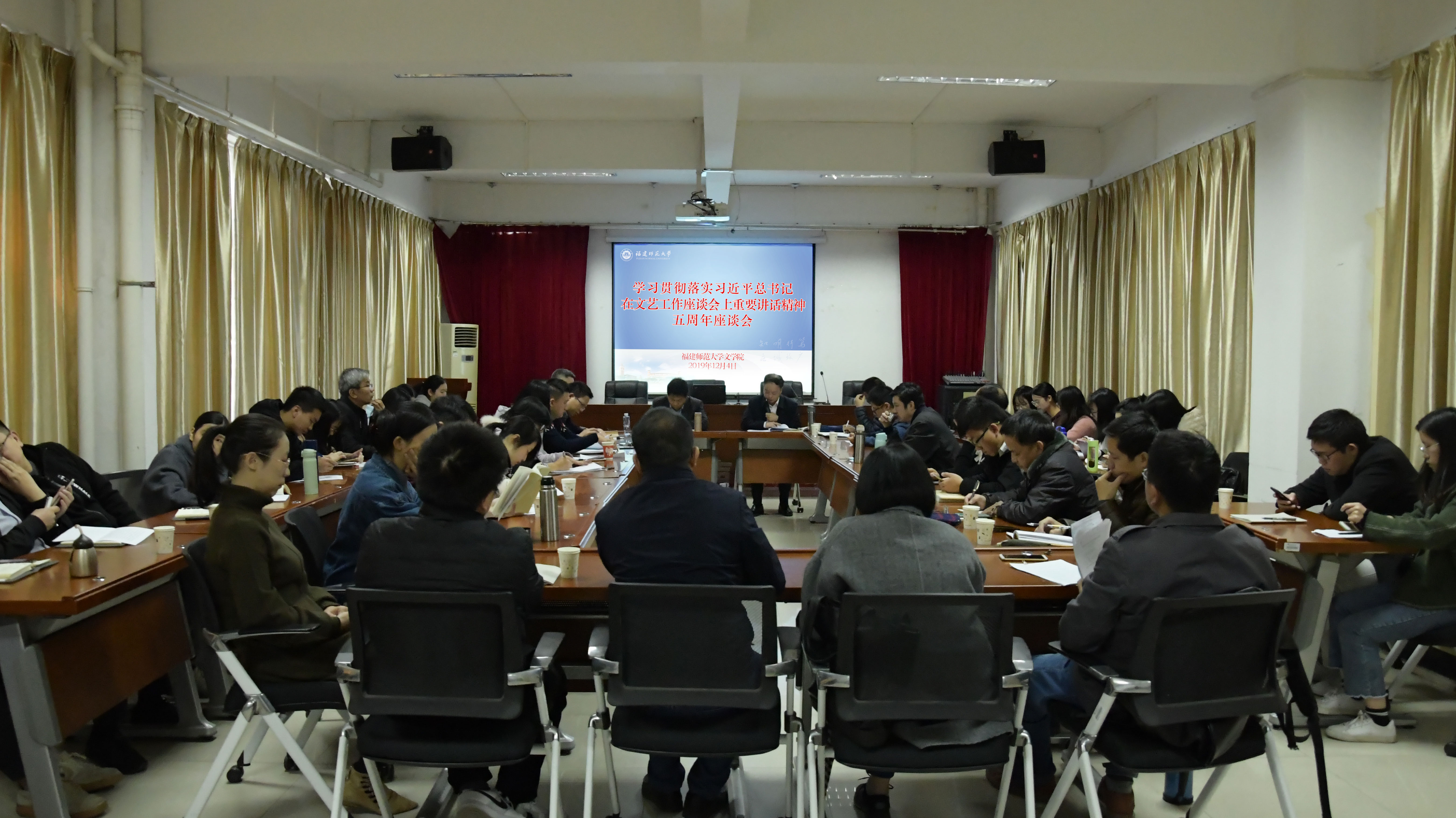 为学习贯彻落实习近平新时代中国特色社会主义思想,在习近平总书记文艺工作座谈会重要讲话发表五周年之际,U8·电子(中国)官方网站文学院召开学习贯彻落实习近平总书记在文艺工作座谈会上重要讲话精神五周年座谈会。福建省社科院副院长刘小新研究员应邀出席座谈会并作专题报告,学院党委书记李建华主持座谈会。学院党政班子、支部书记、教研室负责人,教师、学生代表参加座谈会,并从各自研究领域和工作实践发言交流,分享学习贯彻总书记讲话精神心得和实践经验,以期推动文艺研究和文学创作再登高峰。