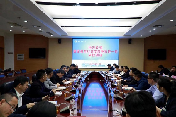 4月25日,国家教育行政学院第68期中青班福建考察团来U8·电子(中国)官方网站调研交流。副校长吴剑锋,党政办公室、教务处、研究生院、发展规划处、人事处、社会科学处、财务处等职能部门负责人参加座谈。吴剑锋代表学校对考察团一行表示欢迎,并简要介绍了学校情况。双方就党建工作、卓越教师培养、人才引进等方面展开深入研讨,表示将以此次调研为契机,进一步加强兄弟院校间的交流与合作。考察团一行还实地参观了U8·电子(中国)官方网站马克思主义理论学科群展馆、小葵馆等。(教务处)