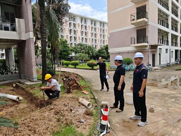 728日,后勤管理处处长钟庆林、副处长黄锦生以及相关人员,实地检查旗山校区桂苑6-16号楼集中供热水系统合同能源管理项目施工现场。