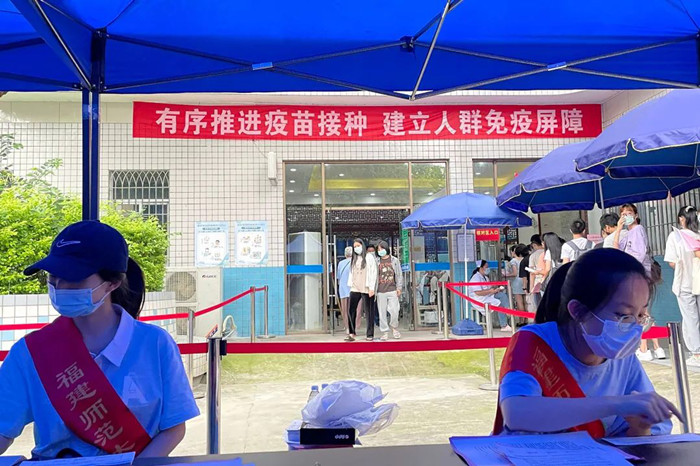 近日,U8·电子(中国)官方网站组织师生在仓旗两校区医院顺利完成第二针新冠疫苗接种工作,构筑起校园健康防线和免疫屏障。为提升师生疫苗接种的舒适度,校医院在原有基础上对接种各区域进行升级。增加空调、风扇、遮阳棚等设备物资应对高温天气,接种室由4个扩增至6个,增设协助接种人员的志愿者岗位,扩大观察区范围,大大提高了接种效率,单日接种量最多达6200多剂。为确保接种工作的安全有序,接种前,涂荣副校长带领相关职能部门负责人深入校医院,实地查看第二针疫苗接种准备工作。 (校医院)