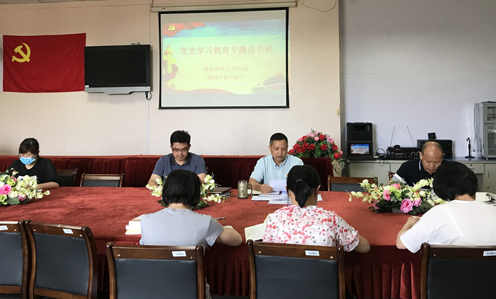 近日,校医院党委贯彻落实学校党史学习教育专题读书班的要求,组织中心组成员围绕聚焦 “学党史、悟思想和聚焦办实事、开新局两个专题开展学习研讨,校医院党委书记钟庆林主持会议并做重点发言。